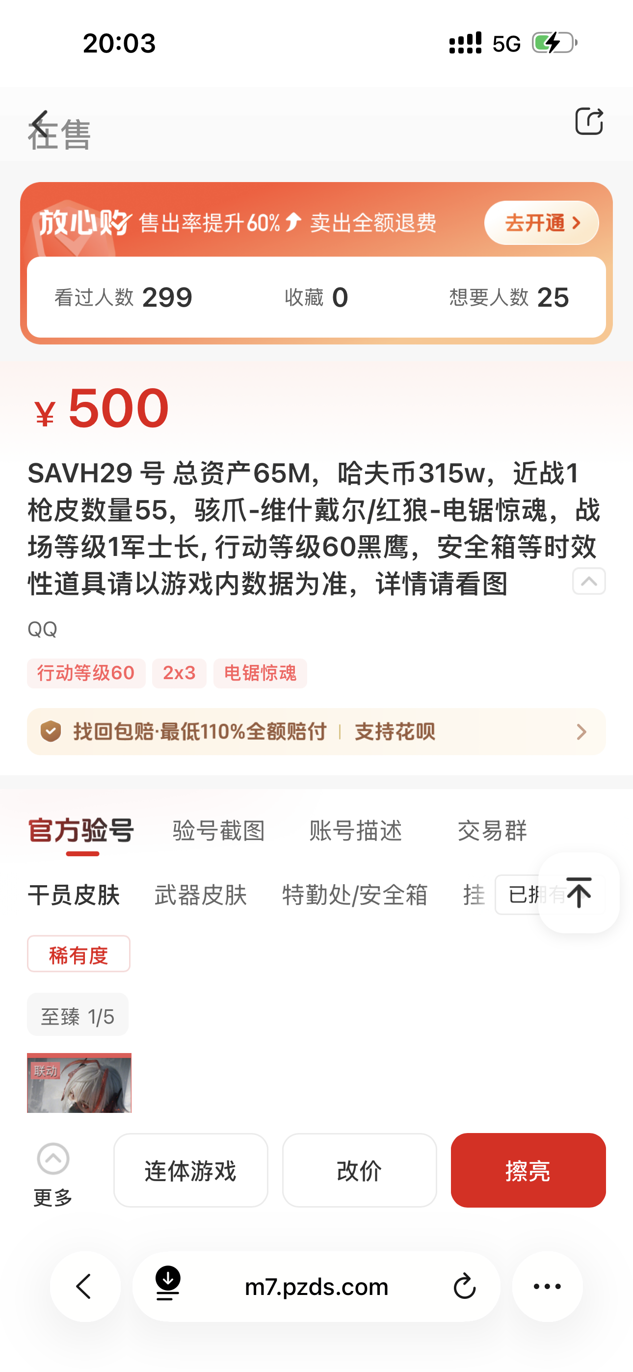 hssjz553 总资产187.92M,哈夫币 262.37K,战场等级:22 上等兵,行动等级:6