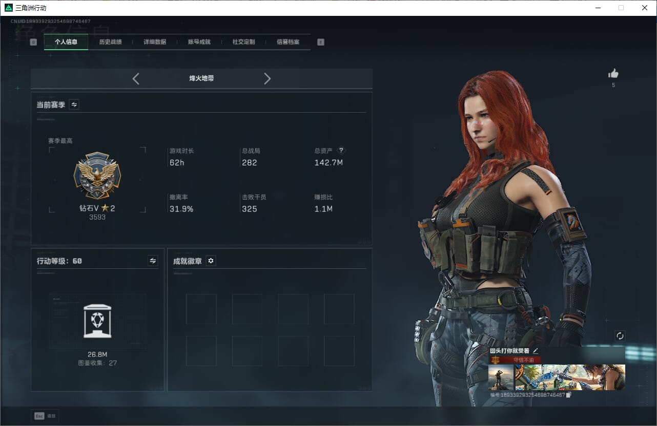 总资产:236M 2干员外观 13传说枪械 高级安全箱(2×3)1.28号到期 哈夫币:80.5