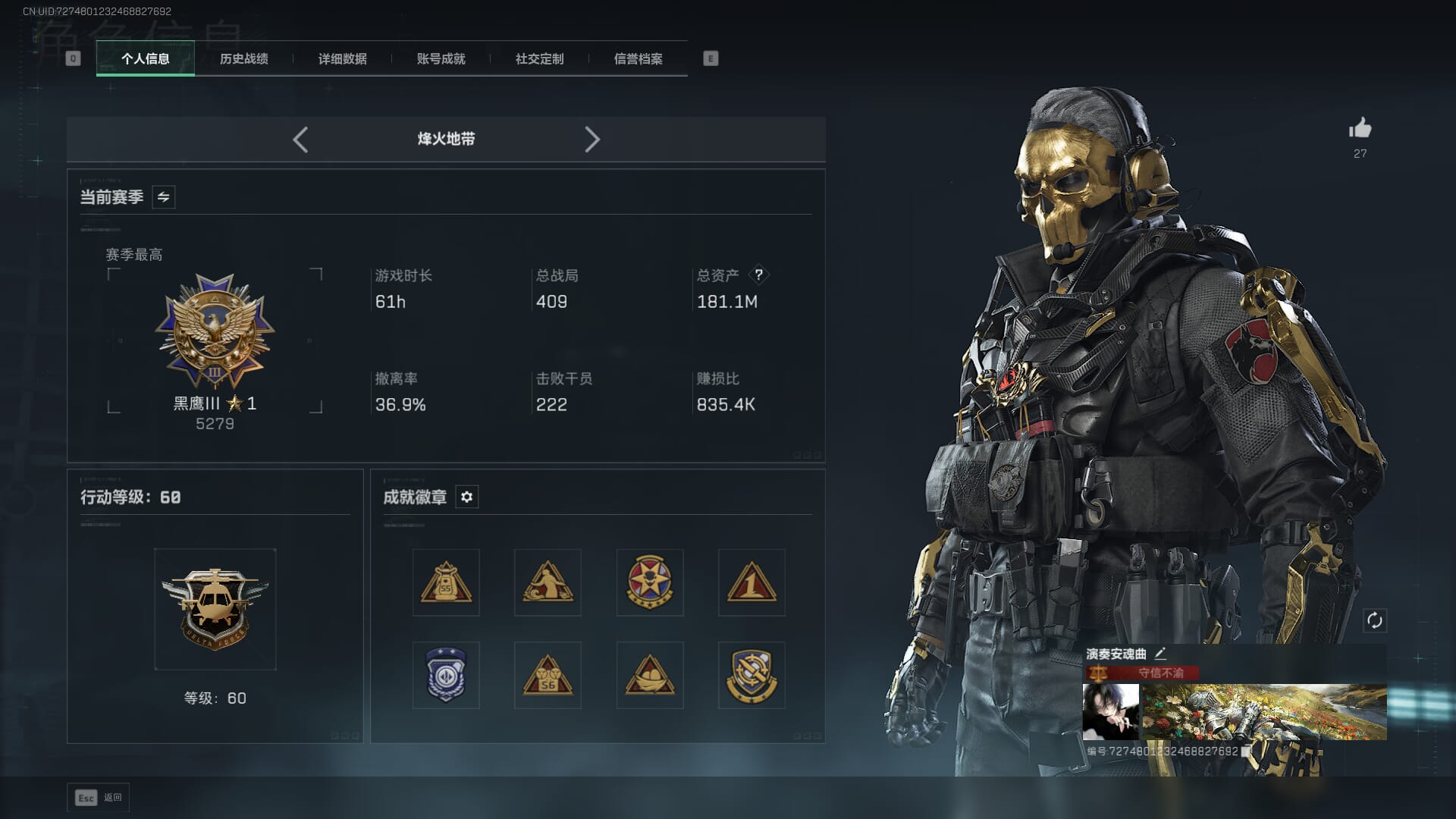 哈夫币数量:190M总资产:369.8M赛季九格打好了