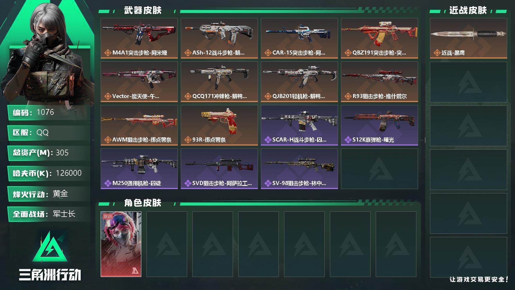 【1051】总资产:166M,哈夫币:420W,武器皮肤104,烽火60级:黑