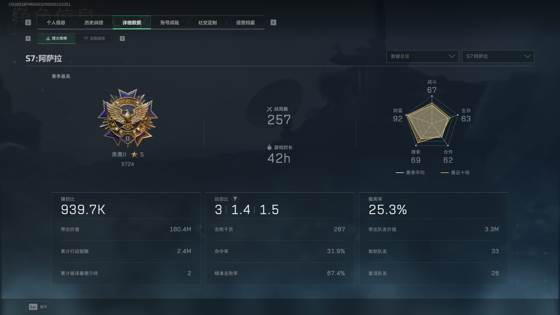H8924/QQ/总资产237.2M/流动资质189.9M/1379W哈夫币/行动等级60/战场等级