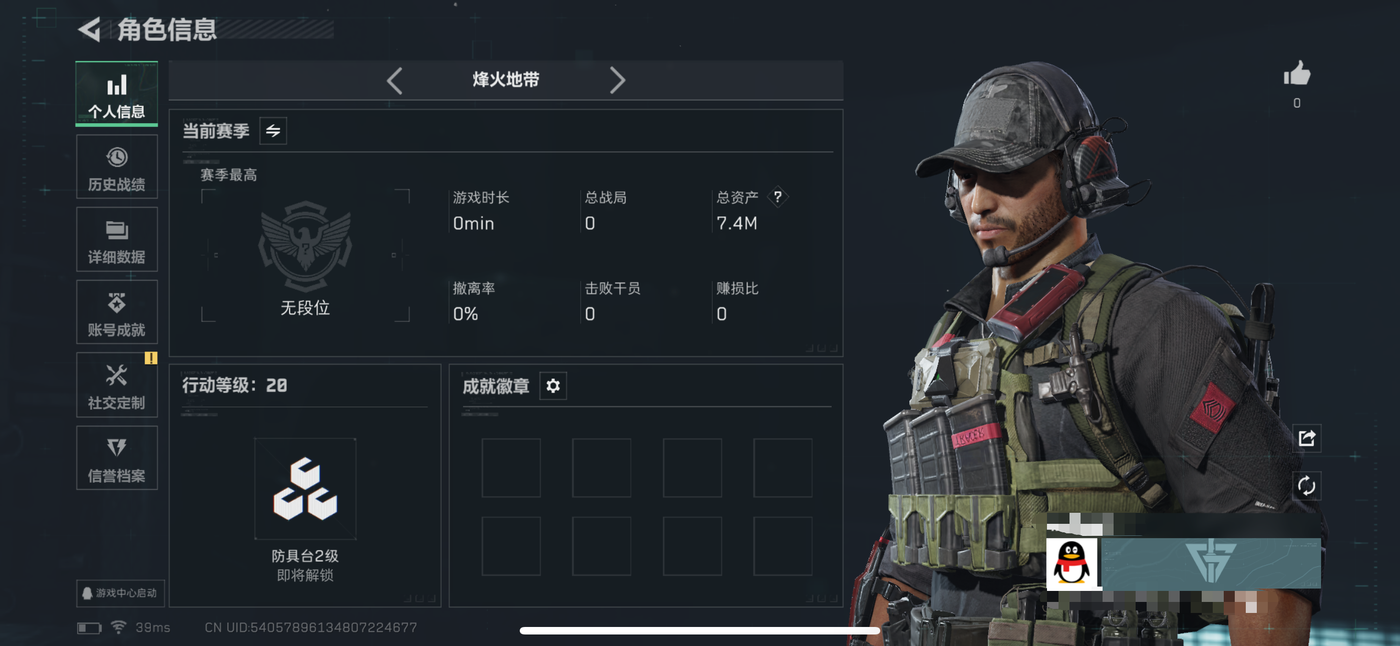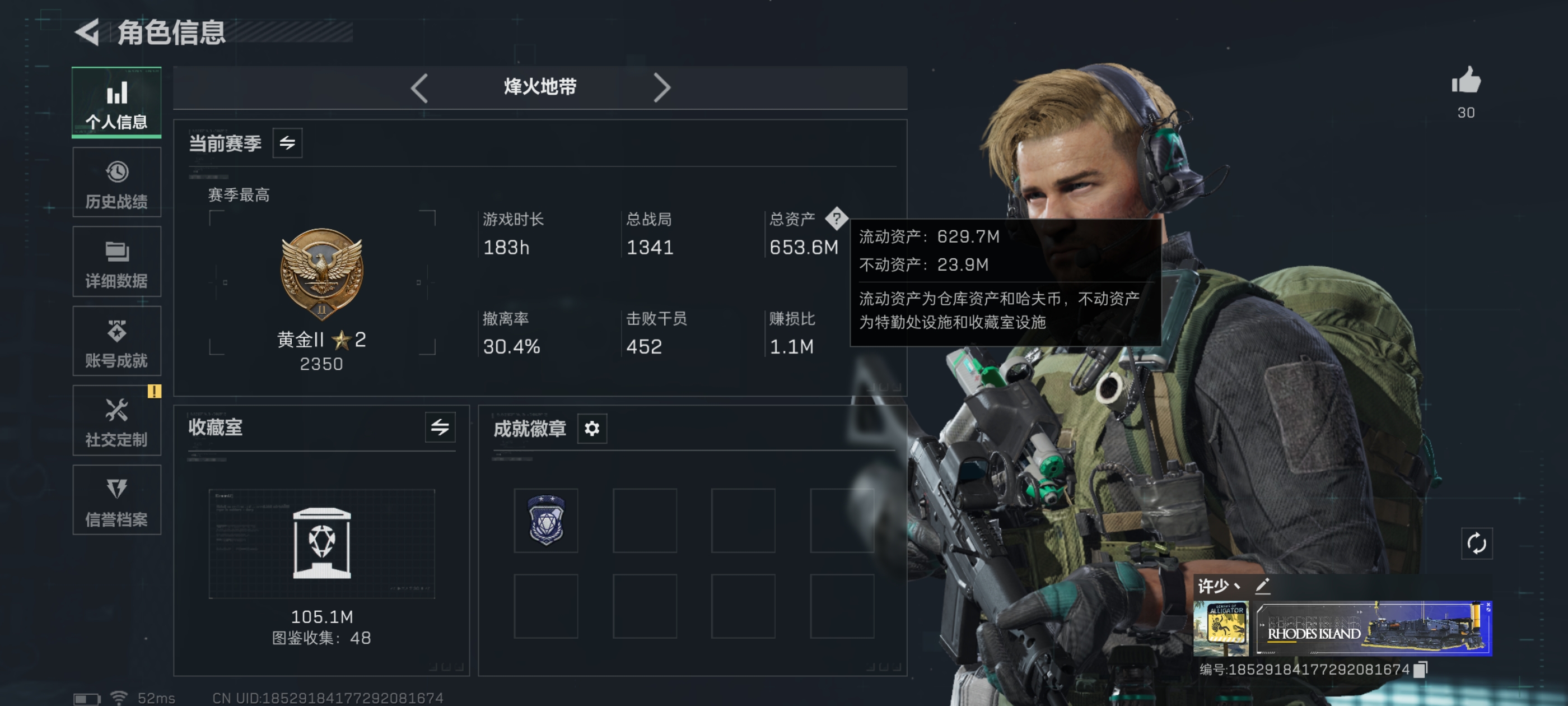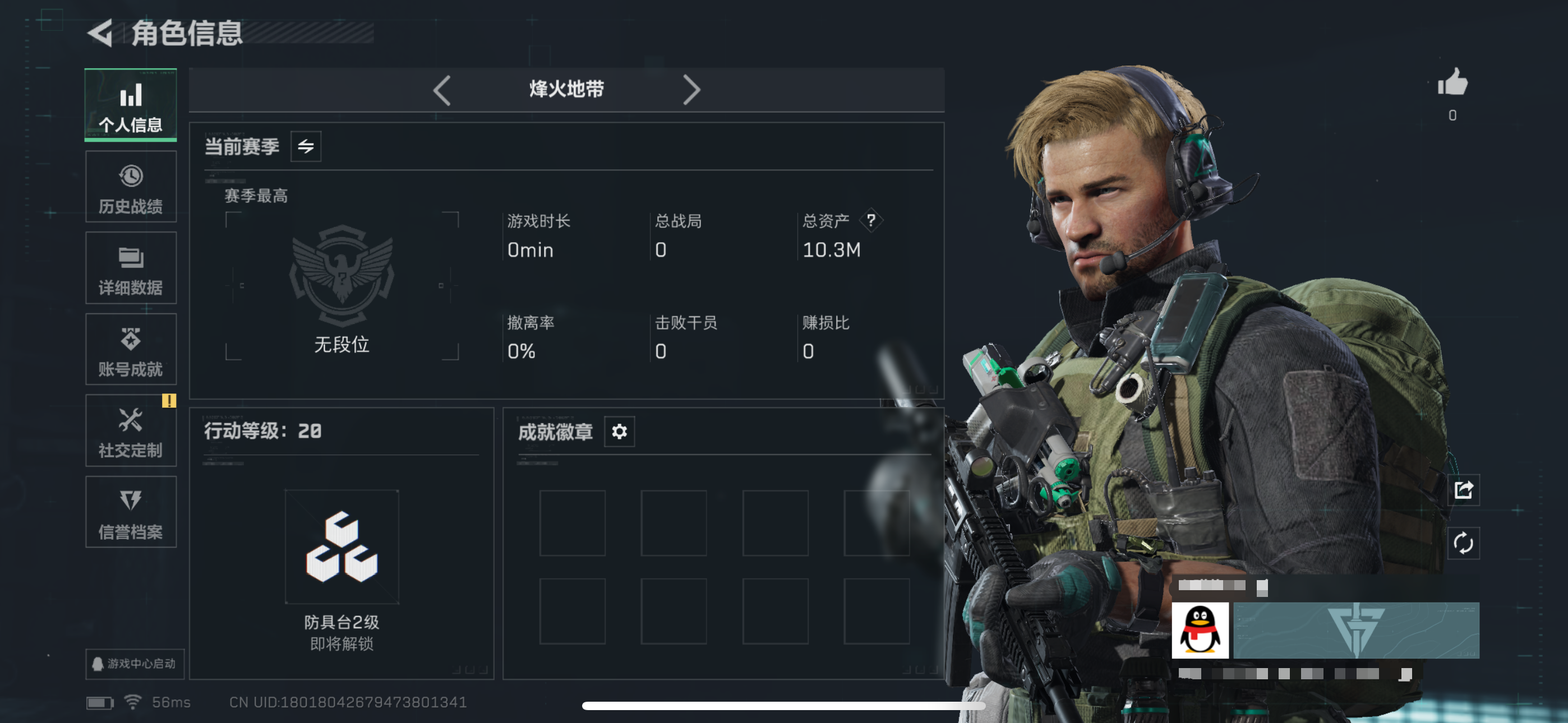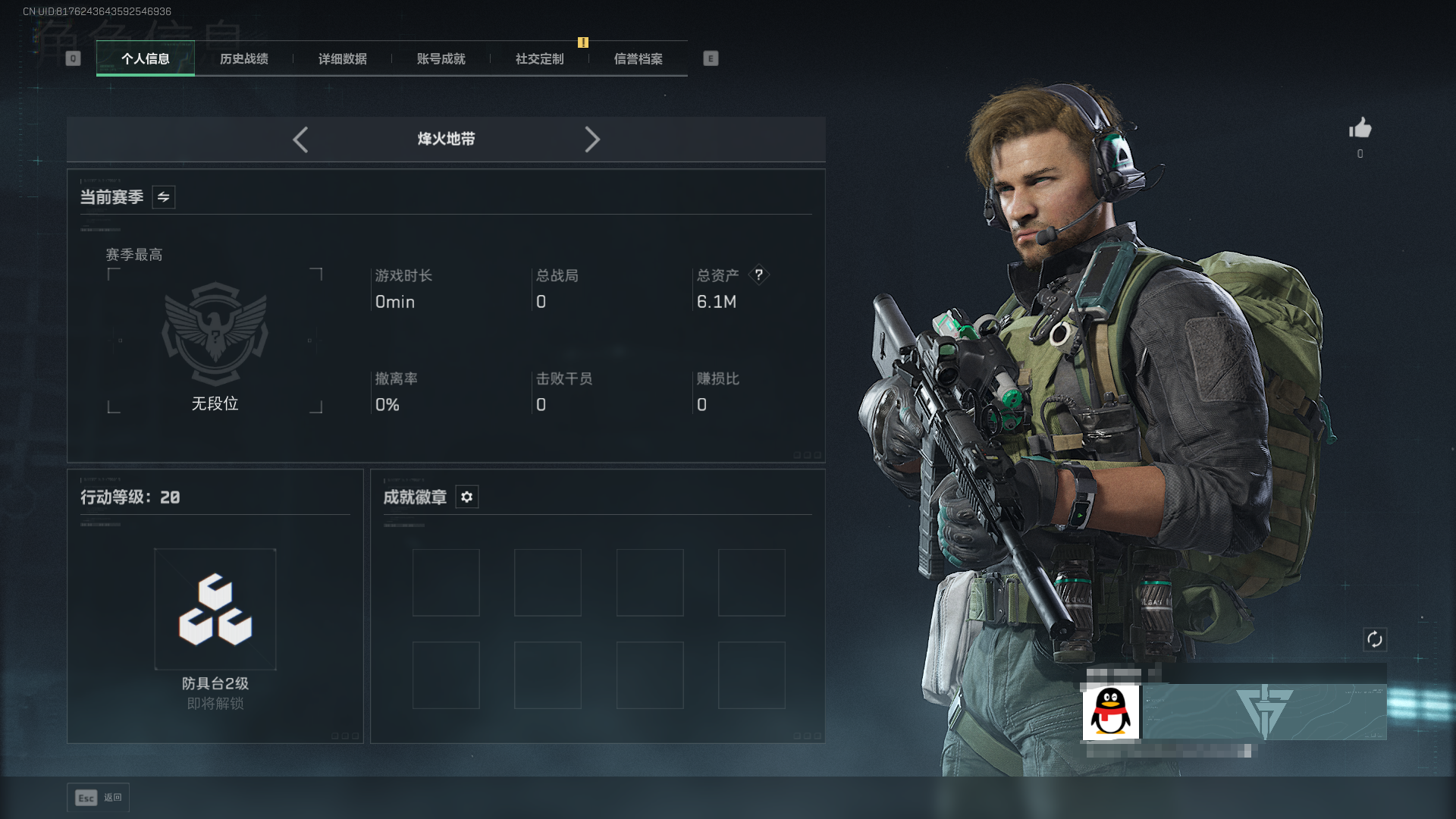 总资产10M-哈夫币2.000K-烽火地带等级-烽火地带段位