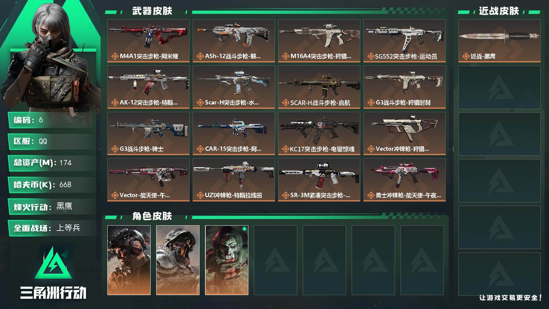 668k哈伏币-135m流动资产-60烽火等级-黑鹰-18战场等级-上等兵,,