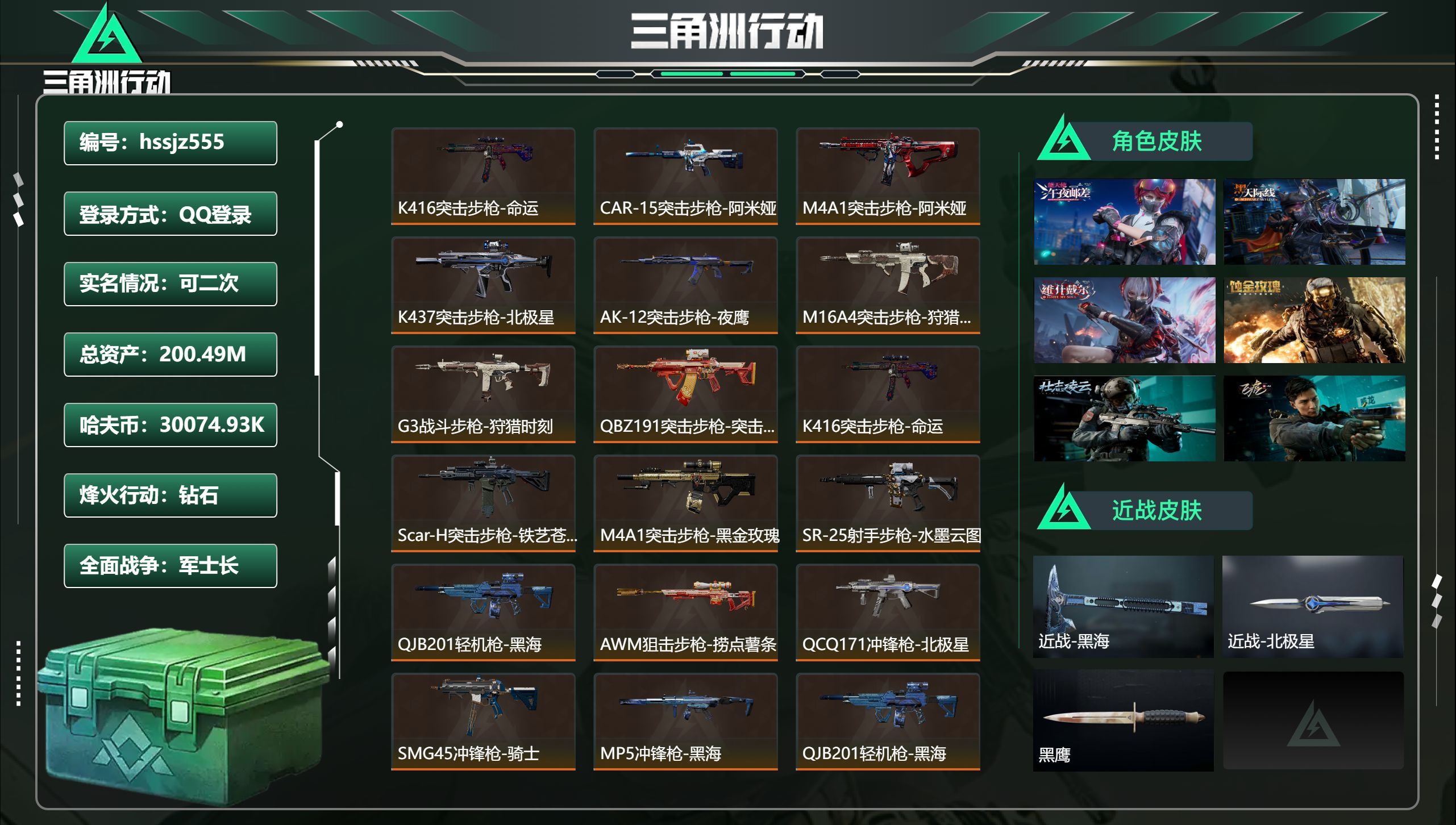 D10589/QQ区/可二次/钱包注销/【总资产:378M,哈夫币:20722W,武器皮肤81+午夜