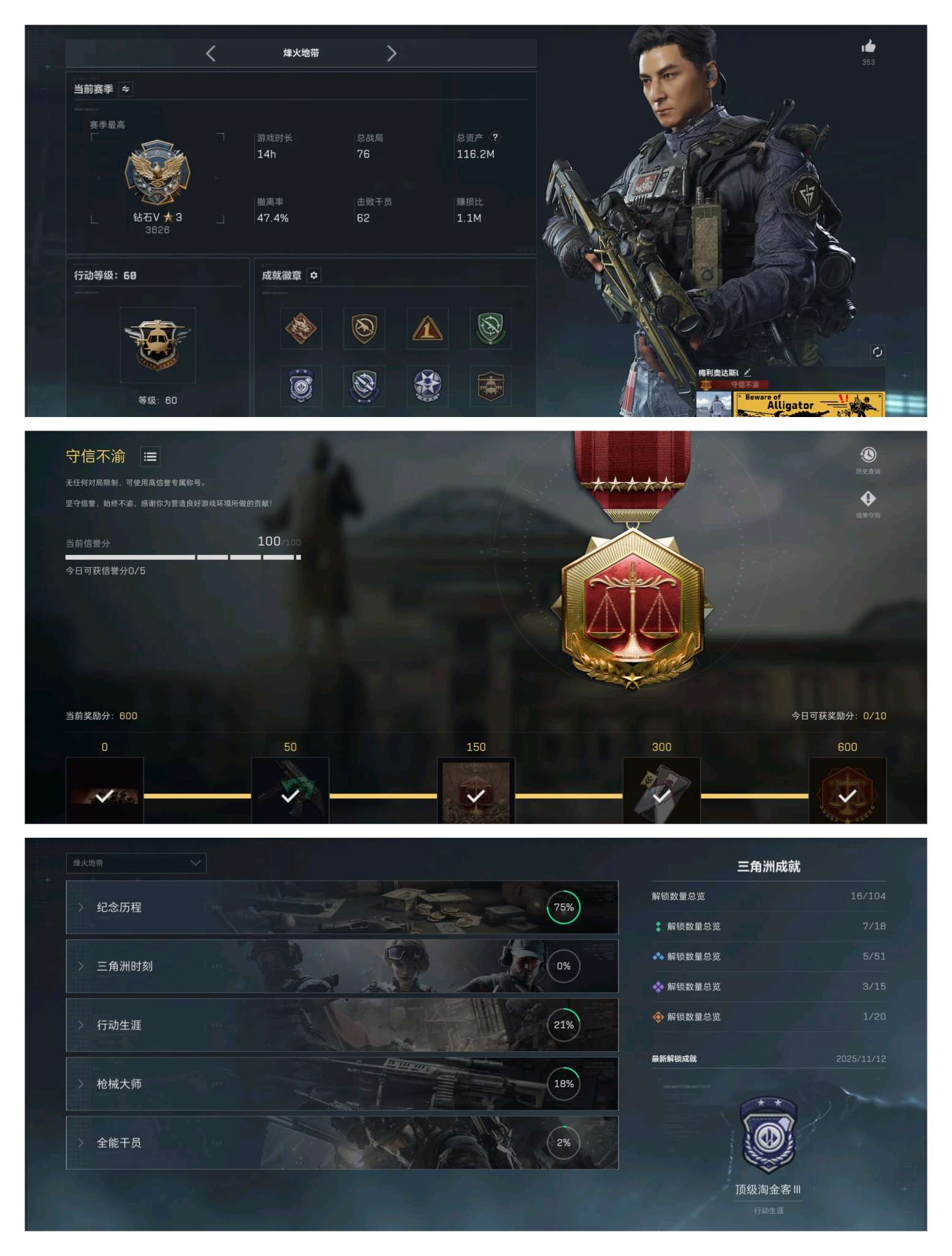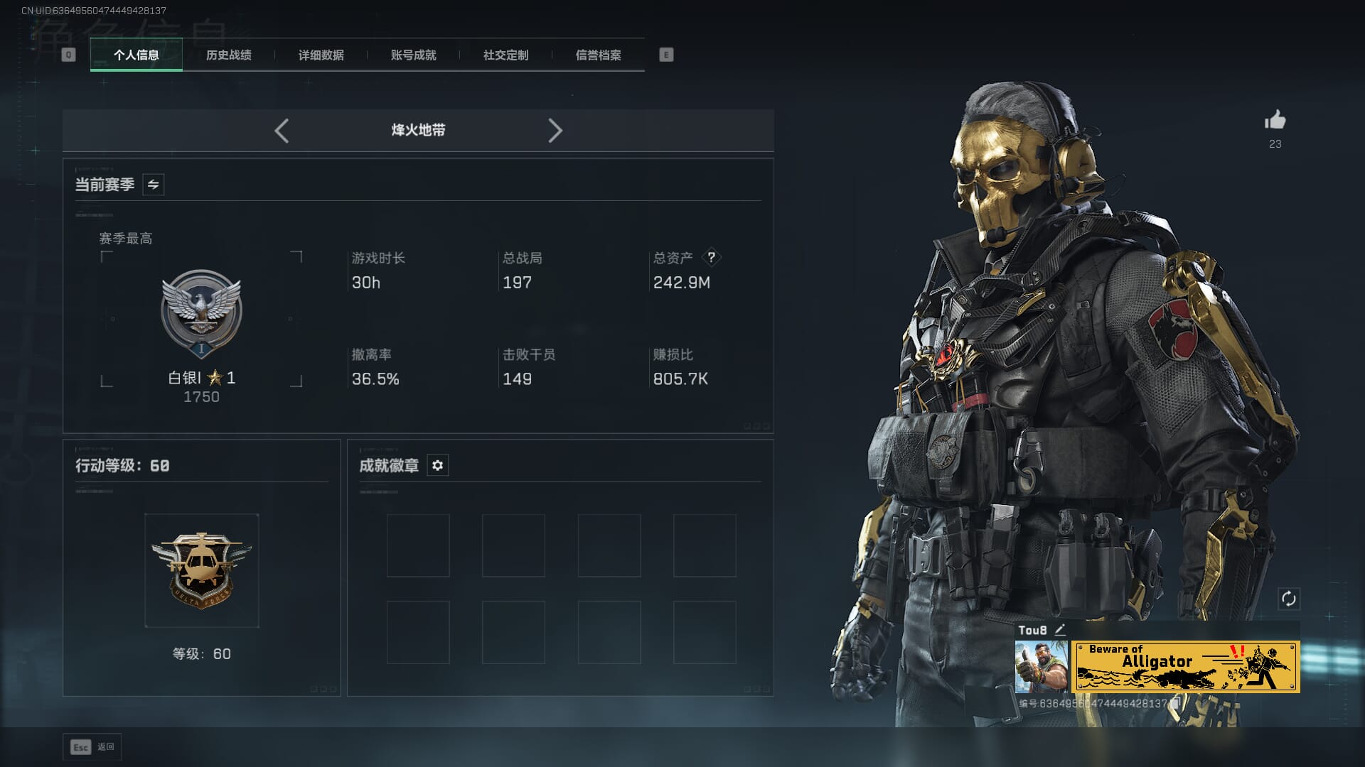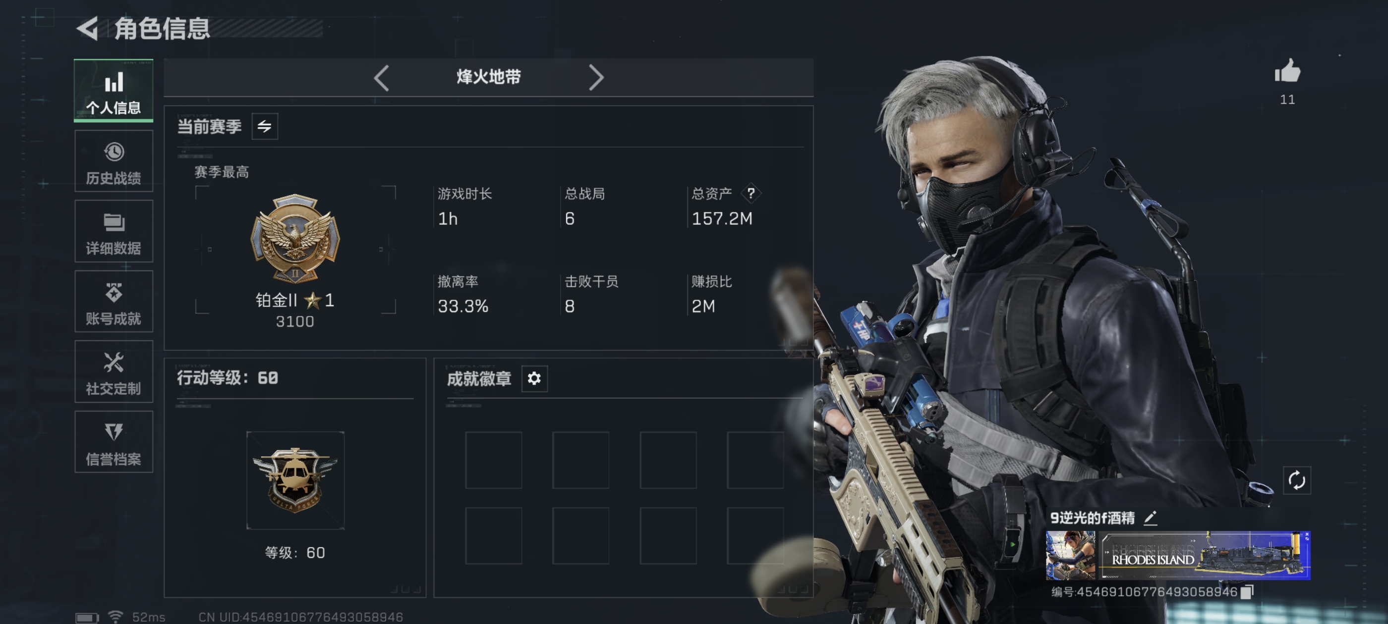 【个人信息】战场等级:10 列兵,行动等级:24 青铜 【哈夫币】1071w