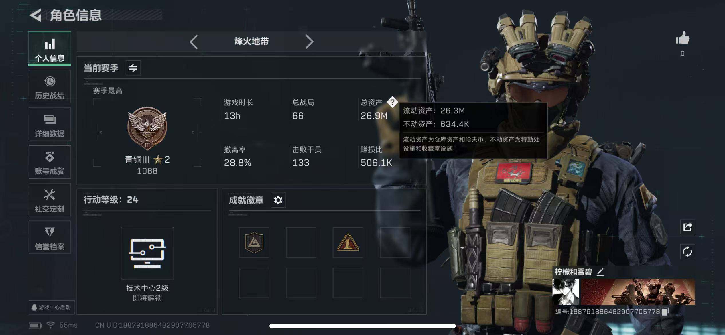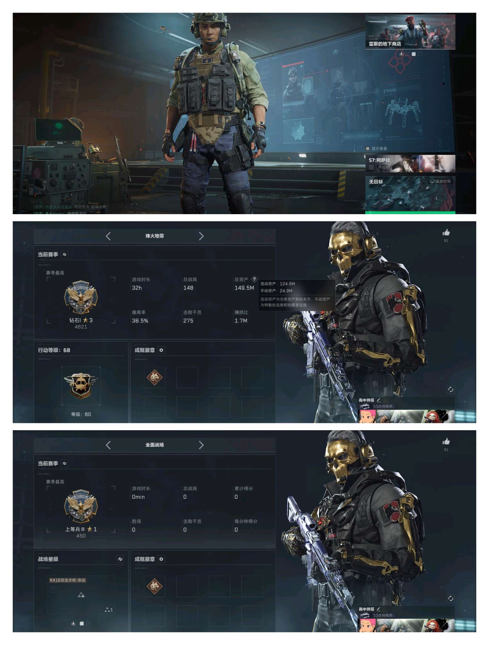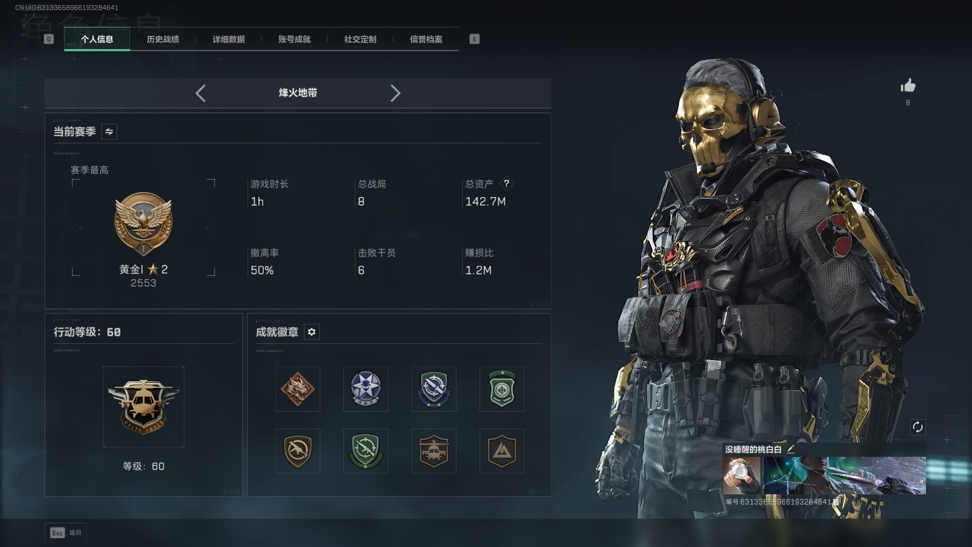 D10755/QQ区/可二次/钱包注销/总资产:125.3M,哈夫币:3W,武器皮肤142;烽火60