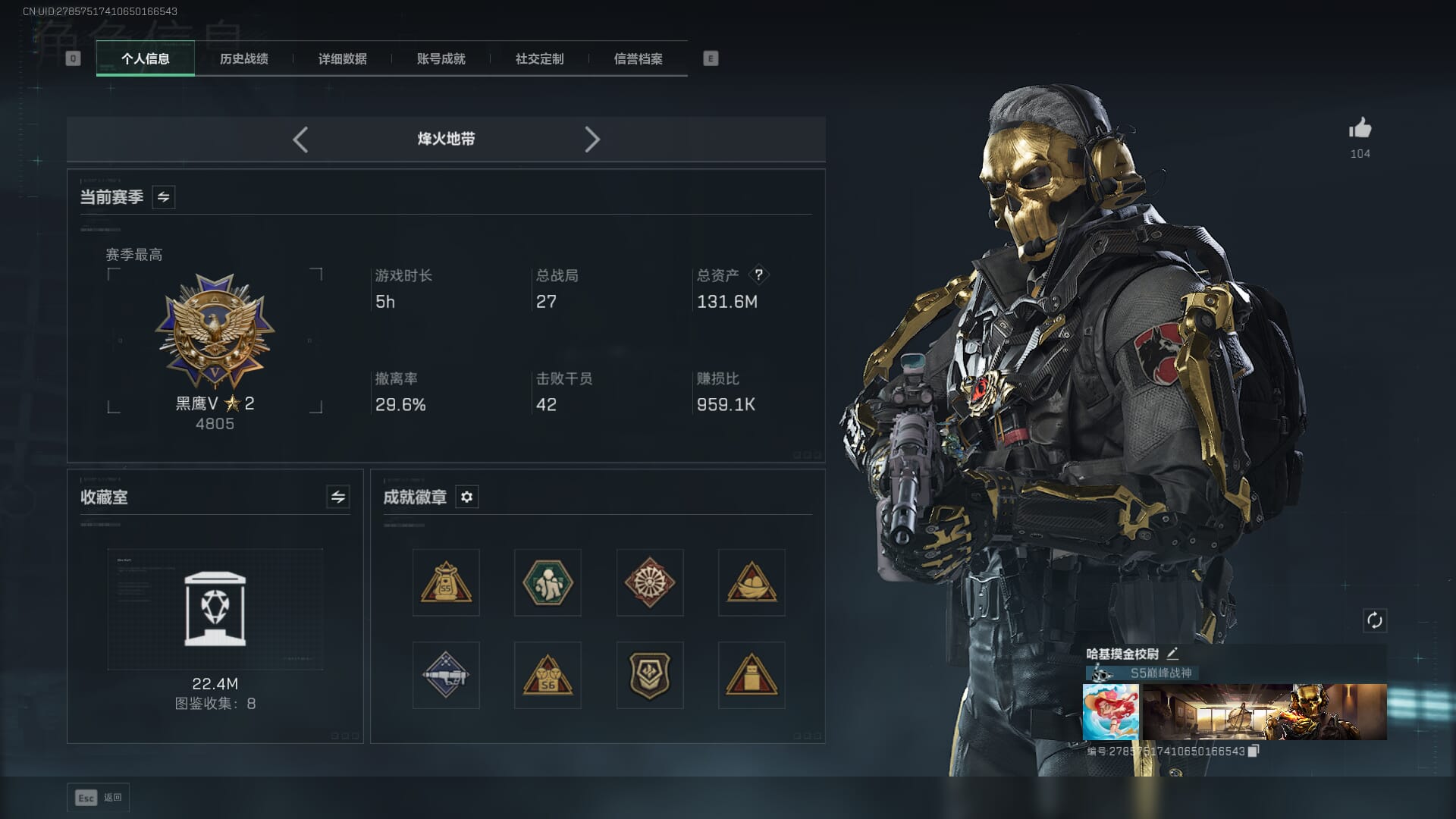 105k哈伏币-24m流动资产-60烽火等级-黄金-32战场等级-上等兵 SS