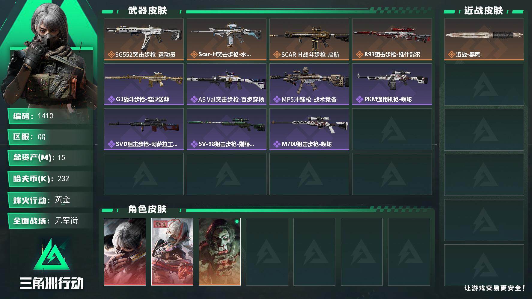 【1410】总资产(M):15M/哈夫币(K):232K/哈夫币(K):232