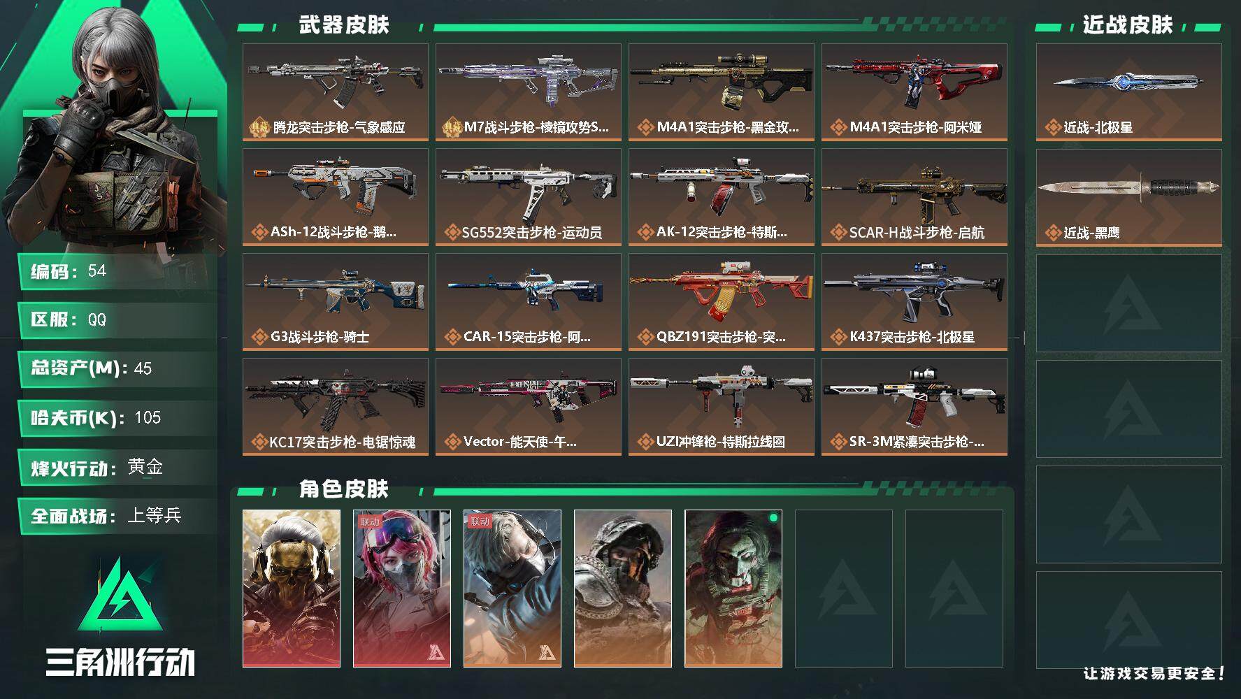 D10754/QQ区/可二次/钱包暂无法注销/总资产:156.5M,哈夫币:260W,武器皮肤227