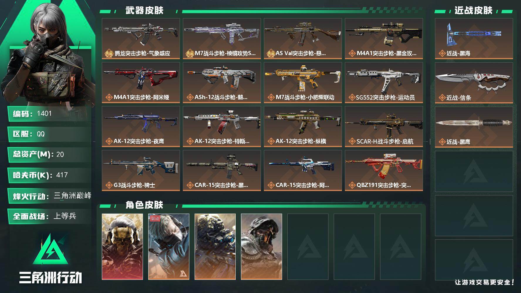 【1401】总资产(M):20M/哈夫币(K):417K/哈夫币(K):417
