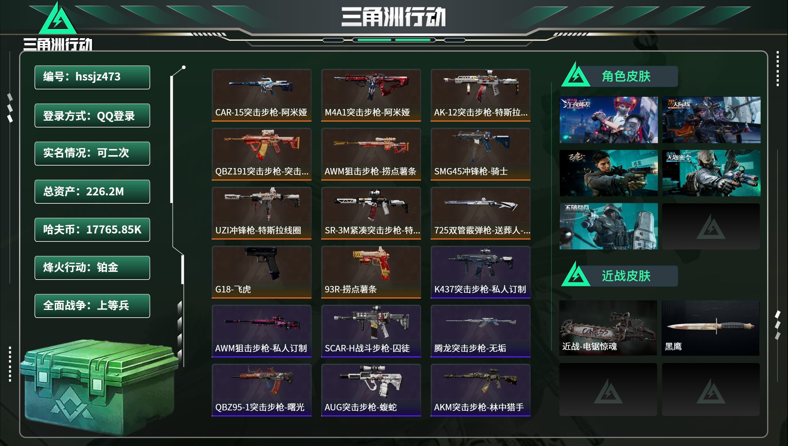 总资产226.2M,哈夫币 17765.85K,战场等级:50 上等兵,行动等级: