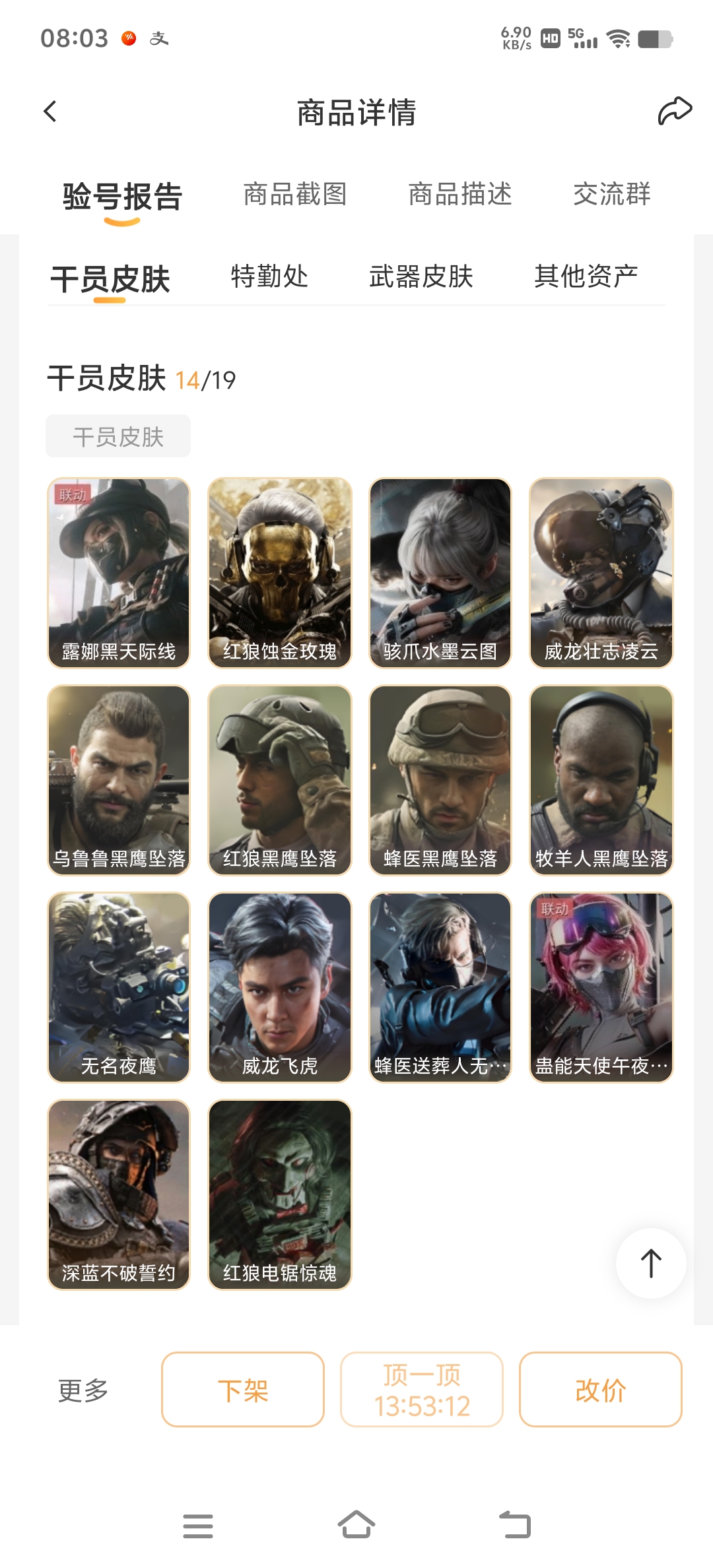 连体号 4红皮 14干员皮肤 410m纯币 660m资产 极品砖皮 三冰龙 里面有各种稀有大红