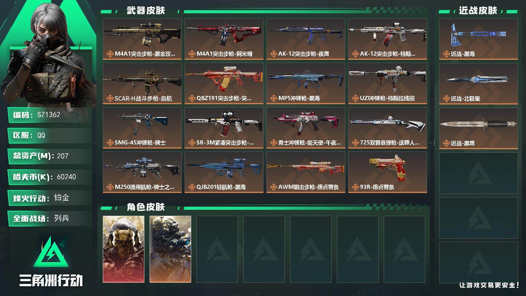 【个人信息】战场等级:11 列兵,行动等级:60 铂金 【哈夫币】6024w