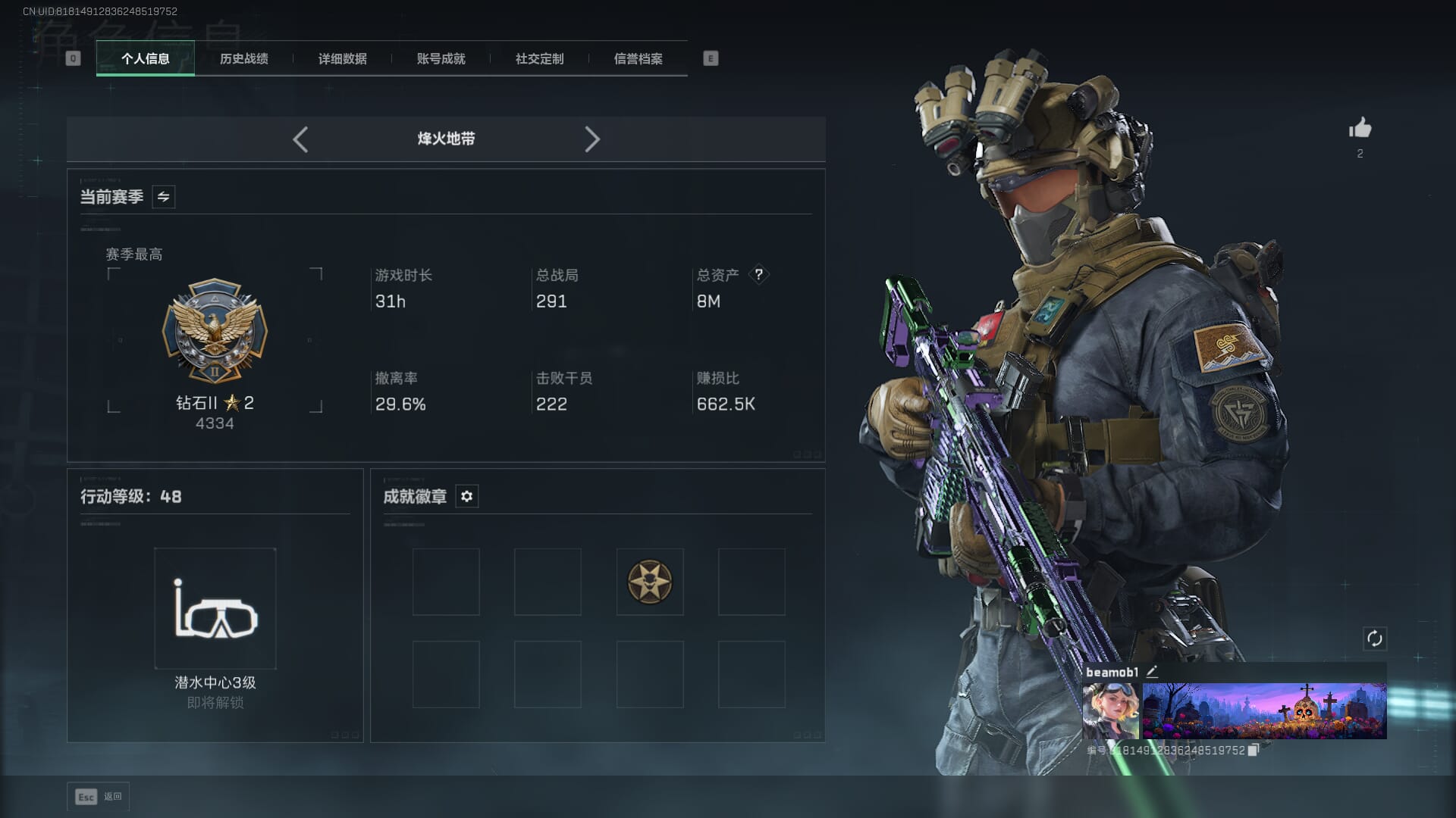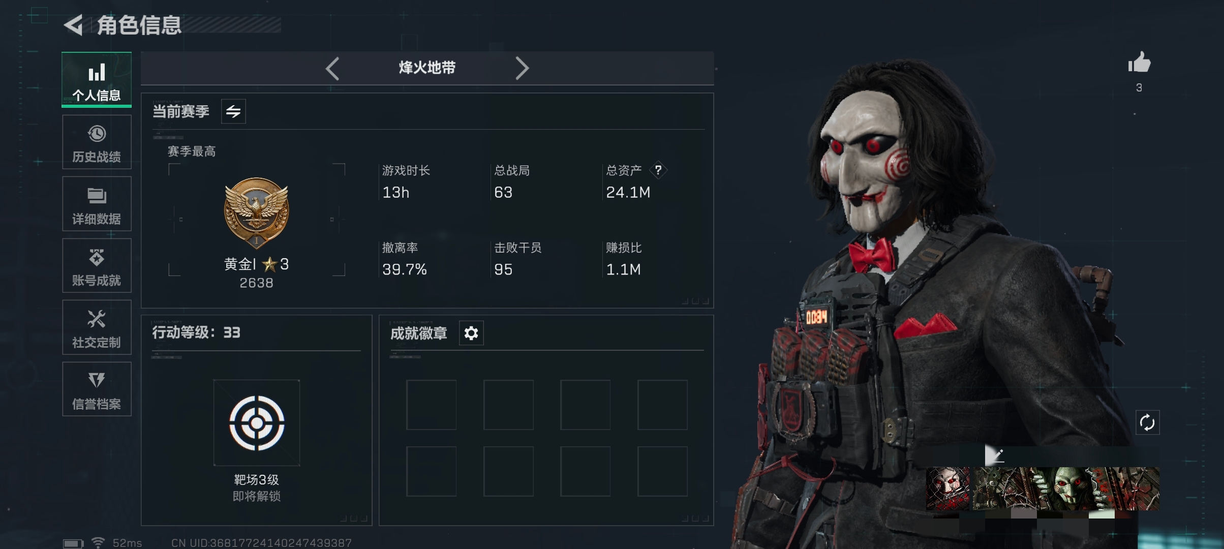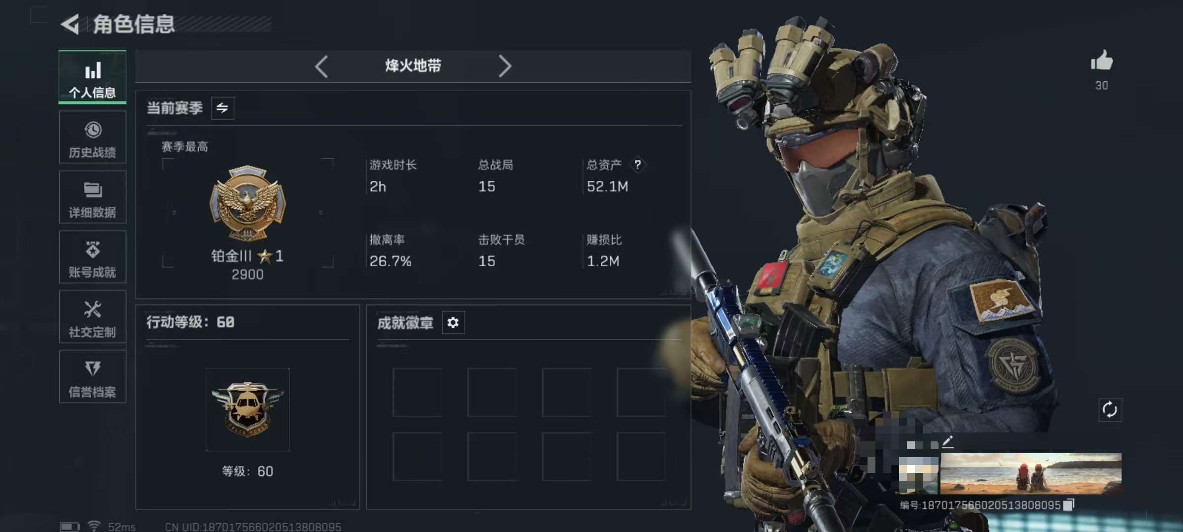 三端互通Q-总价值52m-哈夫币33709k-烽火地带等级60