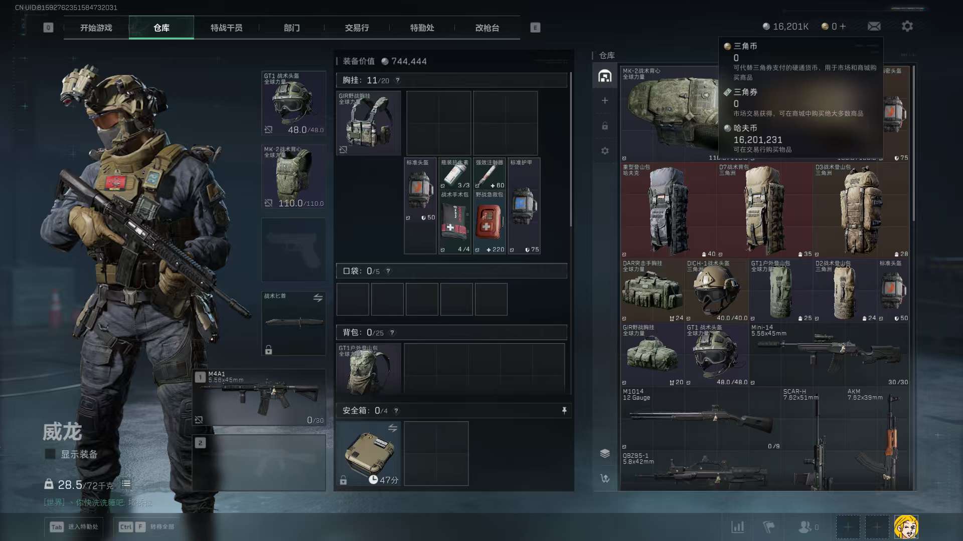 可二次46M7体4负重7仓库烽火等级60武器皮肤金色17个
