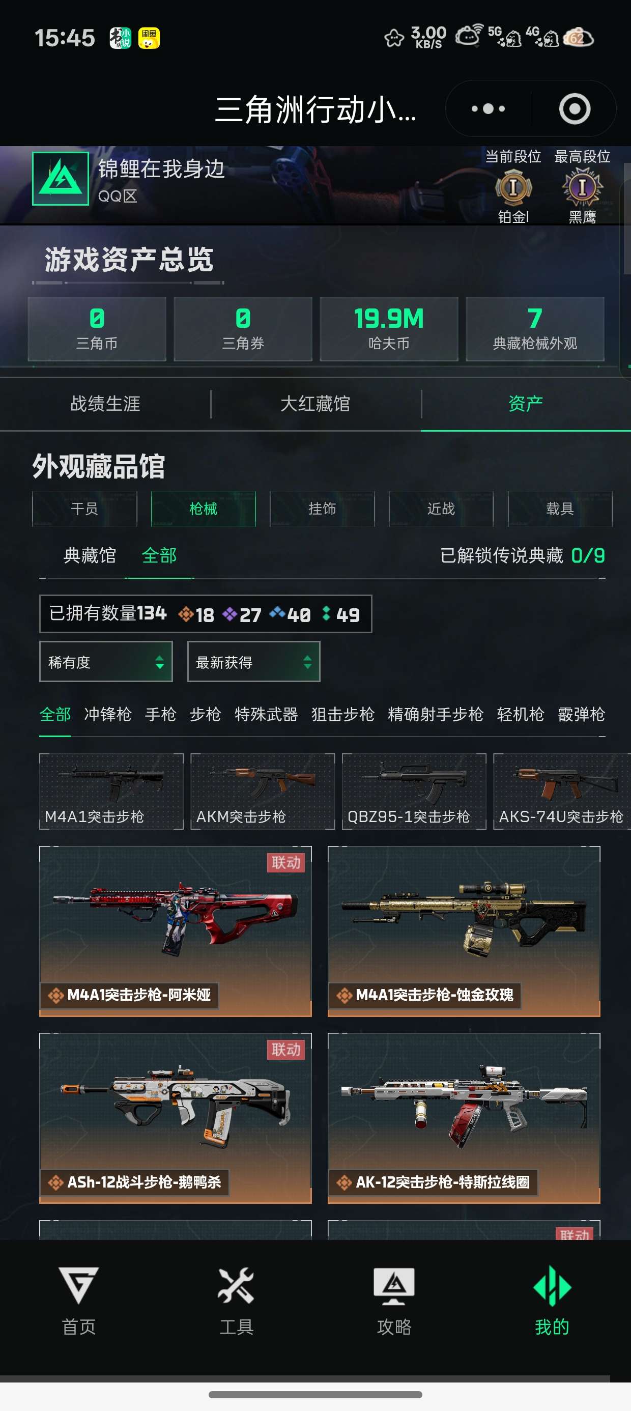 无二次是因为刚创的号,但是不影响,还有一周的九格,三个六甲,俩个头,10发aw,麦小雯皮肤