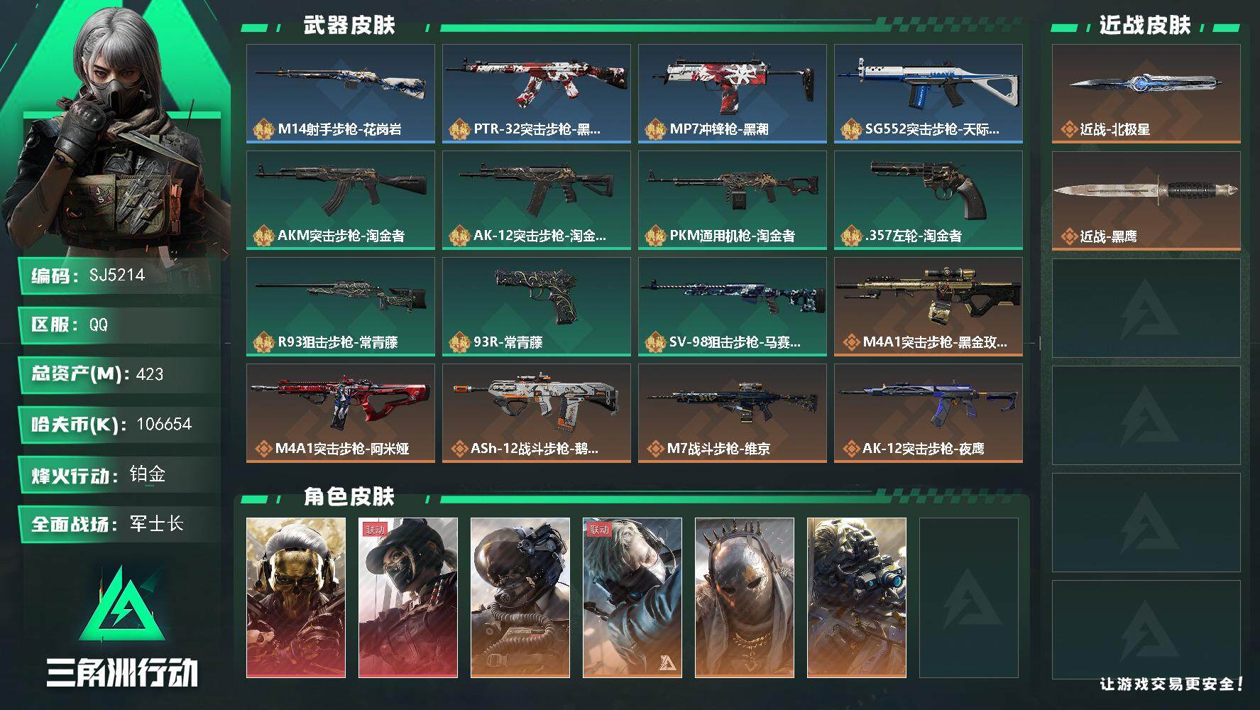 D10698/QQ区/可二次/钱包注销/【总资产:73.9M+近战怜悯+近战黑海+K416突击步枪-