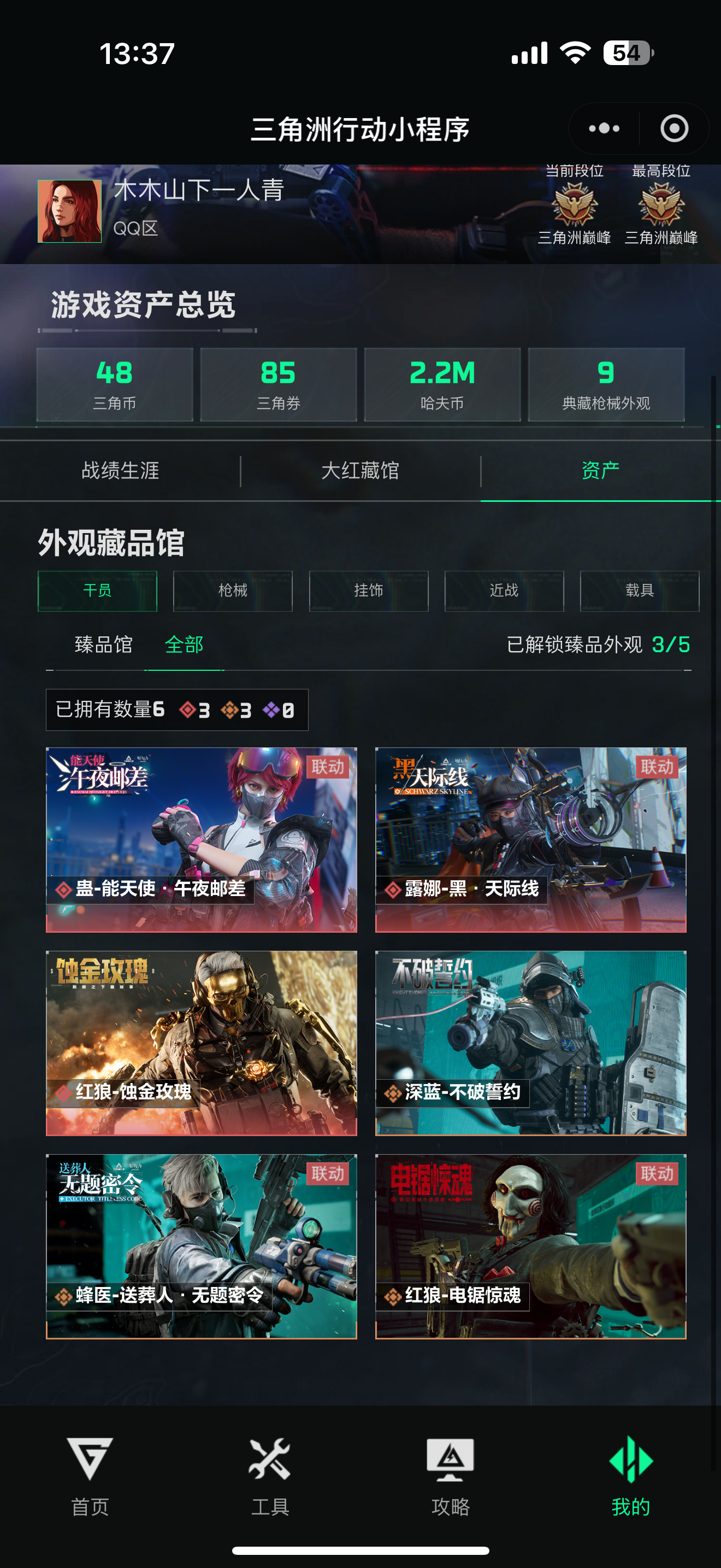 2700万纯币总资产53M,枪皮38个1传说6史诗,33个红箱未开,仓库满,工作台3级