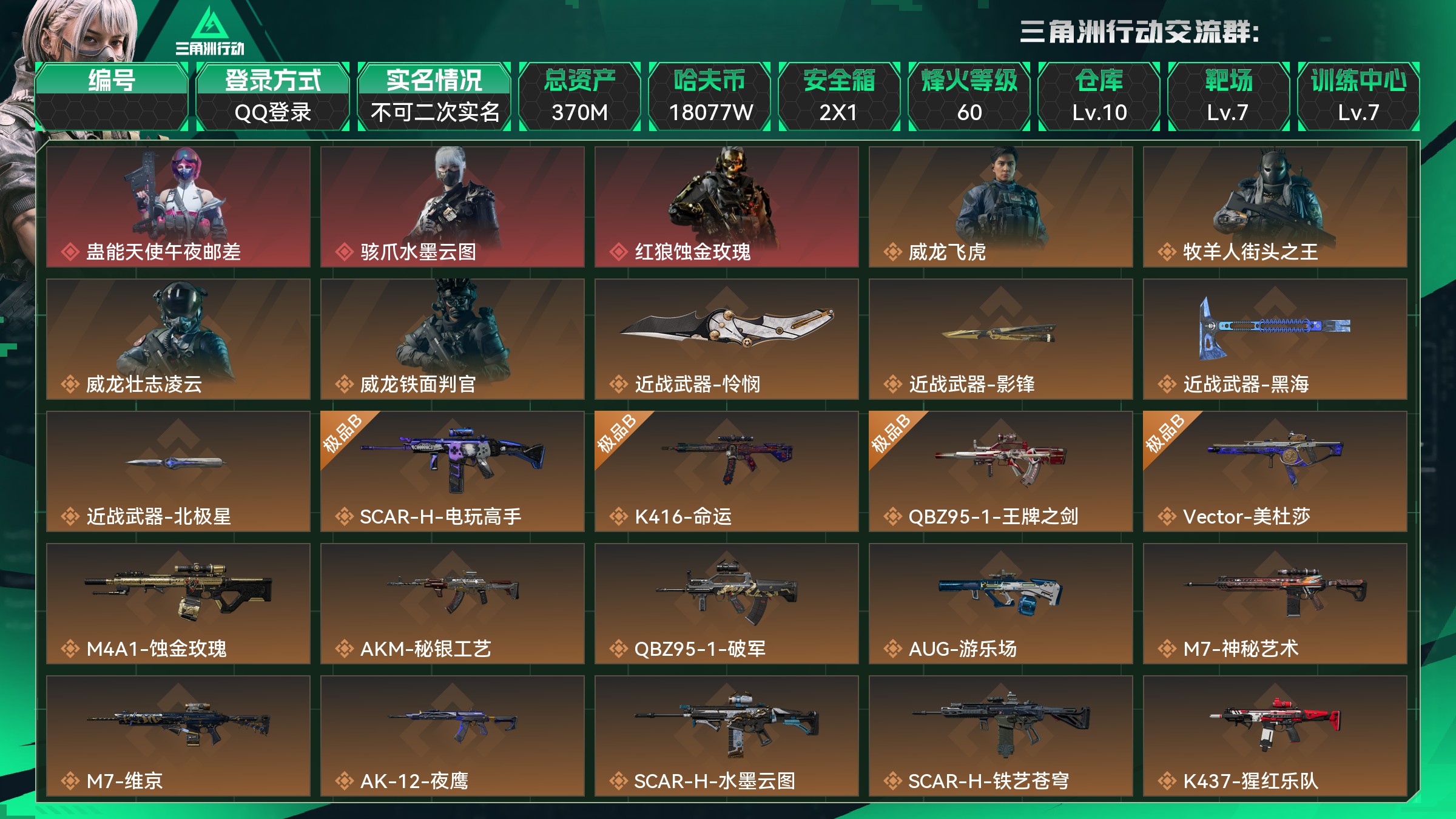 总资产:370M,哈夫币:18077W