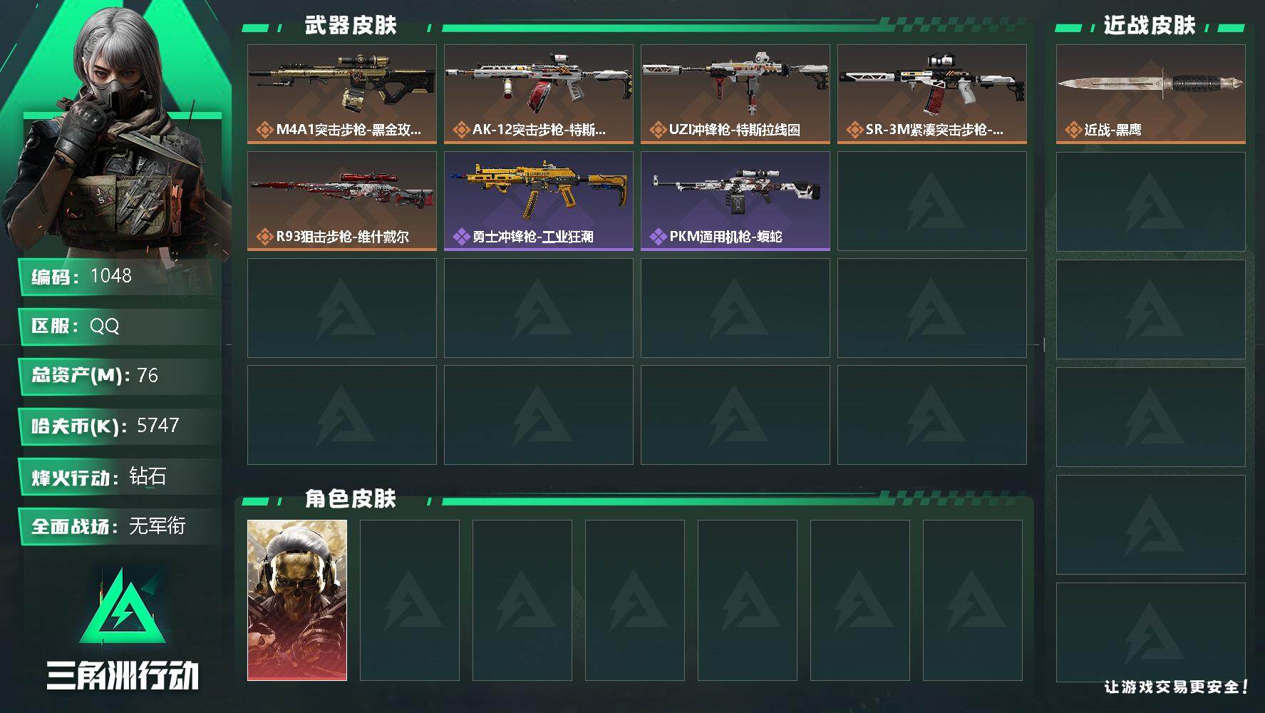 【1048】总资产:76.6M, 哈夫币:5747K ;总资产(M):76M/