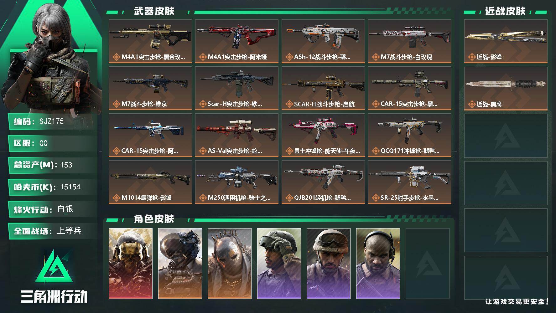 总资产117m+现金七千万+awm子弹12发+体力负重双4 精品纯绿无处罚护航号 烽火地带段位: 黄金 全面战场段位: 上等兵 总资产: 117000000 哈夫币: 71423000