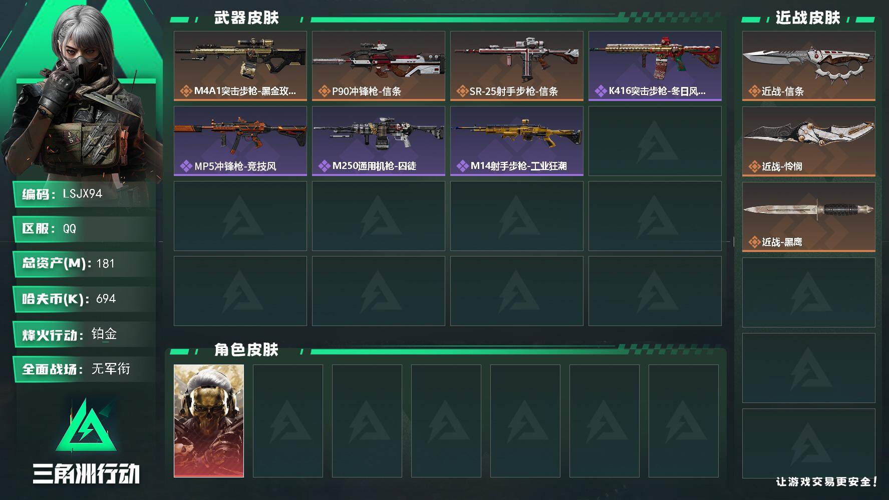 【特价出售/店主推荐】181m总资产-694k哈伏币-60烽火等级-铂金-1战