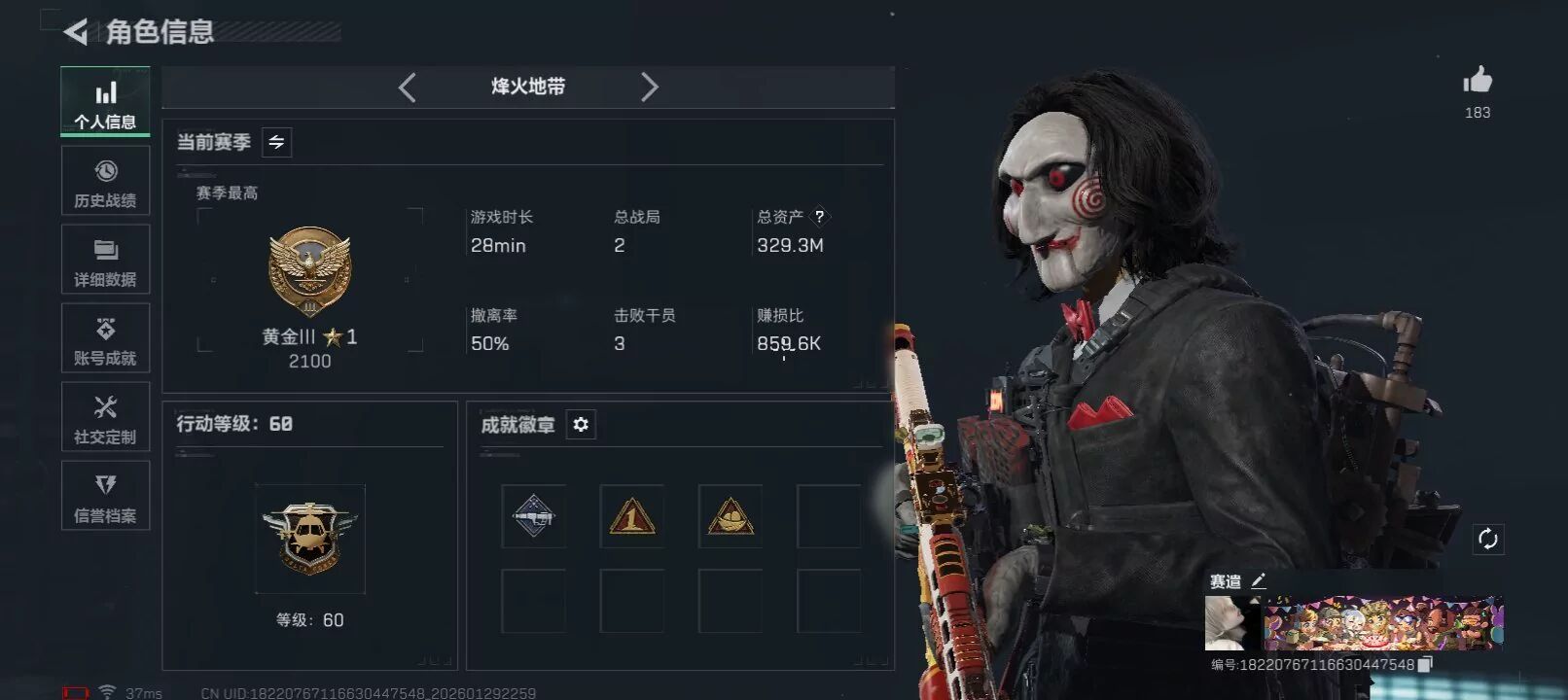 【总资产(M)】19.45【哈夫币】4407k【行动等级】60【烽火地带段位】