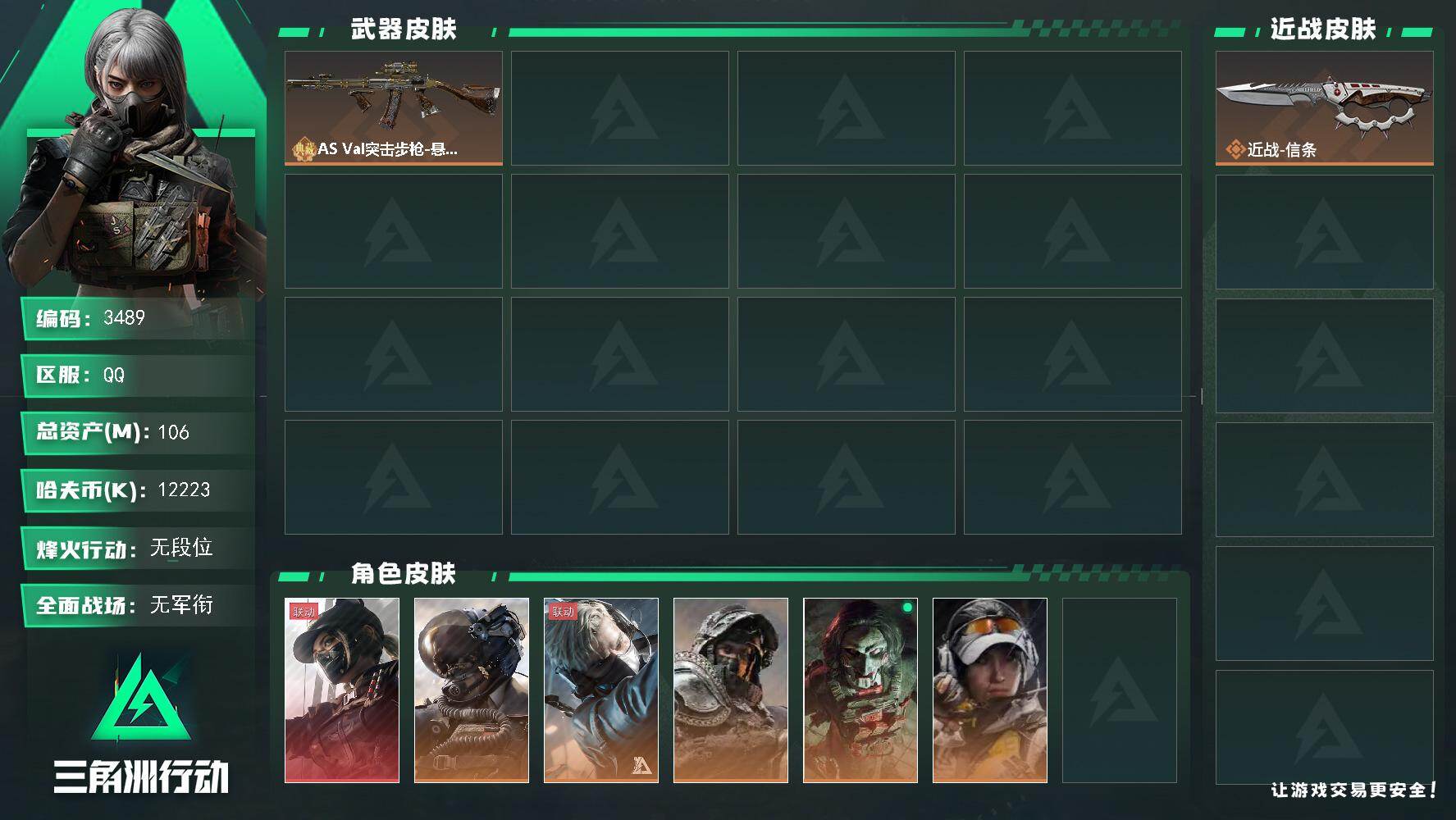 蛊红皮♥五个人物金皮♥绝版黑海刀皮♥八级仓库六级体力+收藏室三个炫彩收藏品!!!天才少年称号!枪皮多
