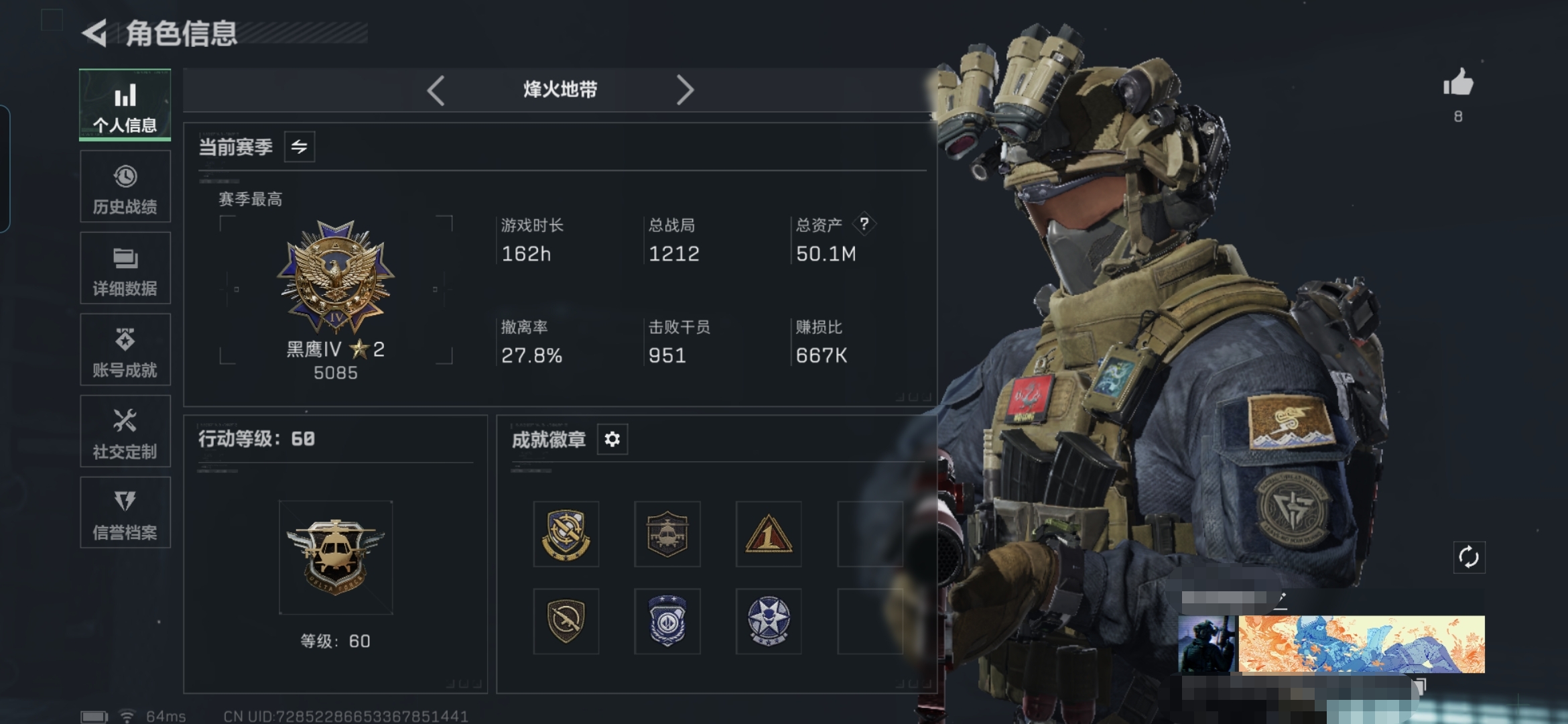 三端互通-总价值24.5M-哈夫币2022k-烽火地带等级60-烽火地带【干员