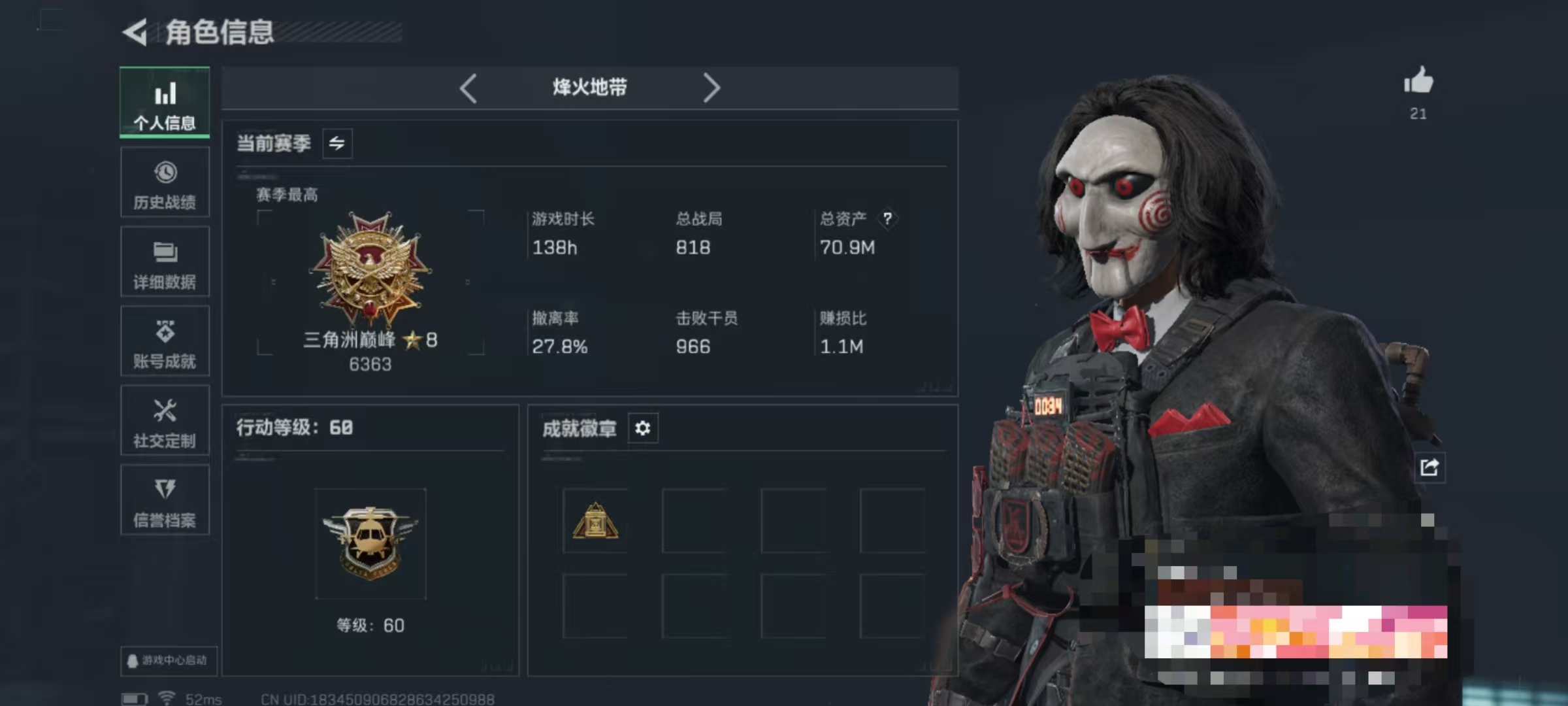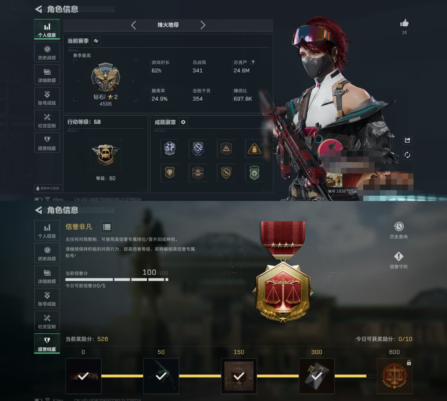 【优品B棱镜】【总资产(M)】76.86【哈夫币】26695k【行动等级】60