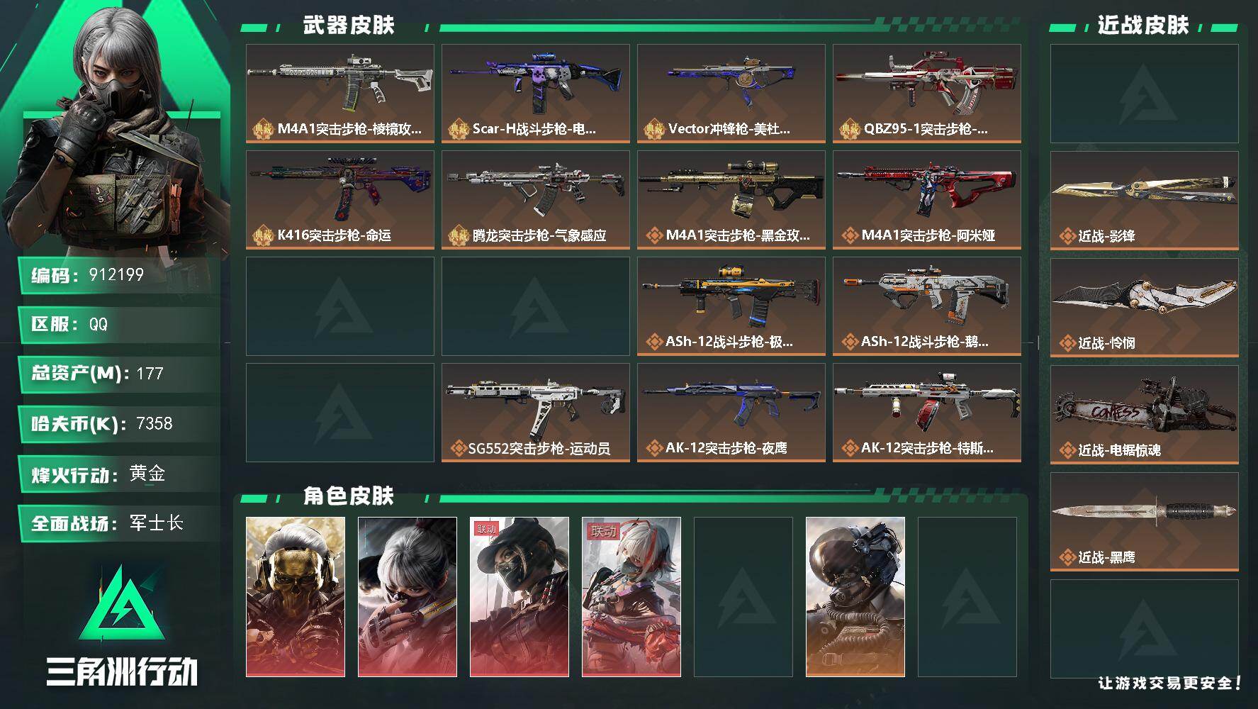 177m总资产-7358k哈夫币-60烽火等级-黄金-45战场等级-军士长