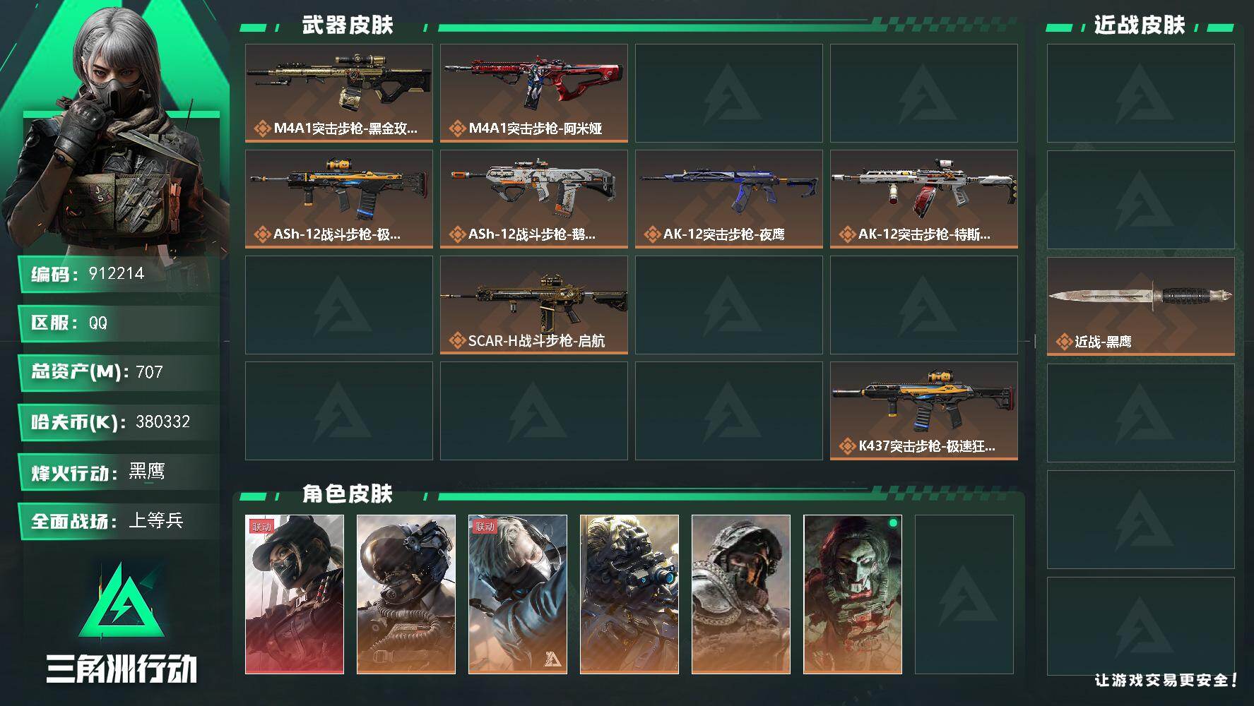 390m总资产-15612k哈夫币-60烽火等级-钻石-33战场等级-上等兵