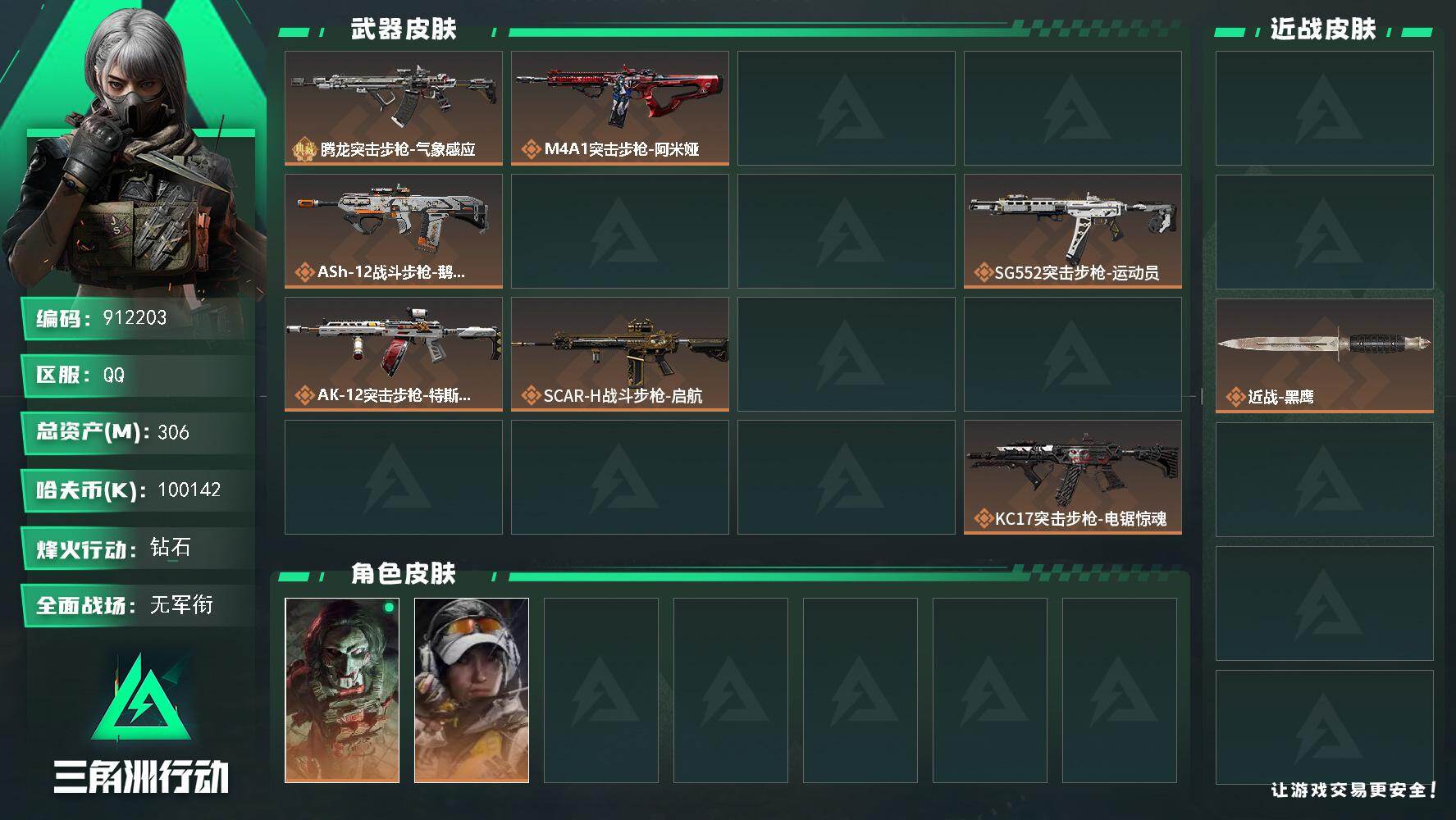 306m总资产-100142k哈夫币-60烽火等级-钻石-25战场等级-军士长