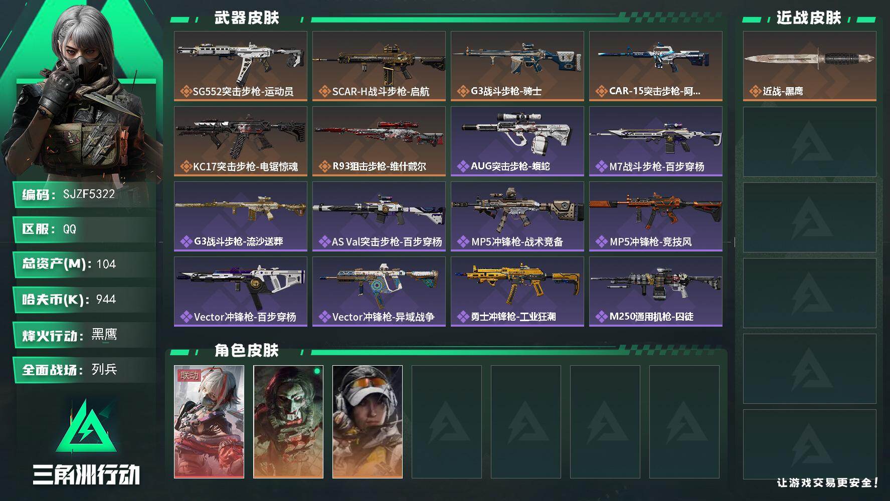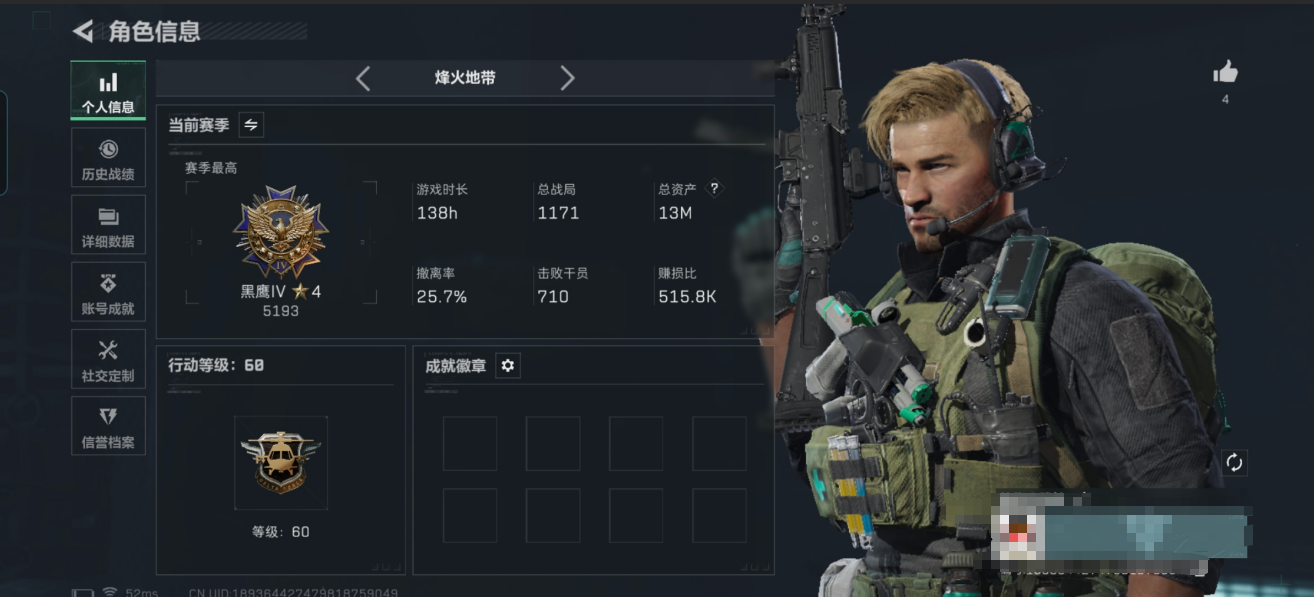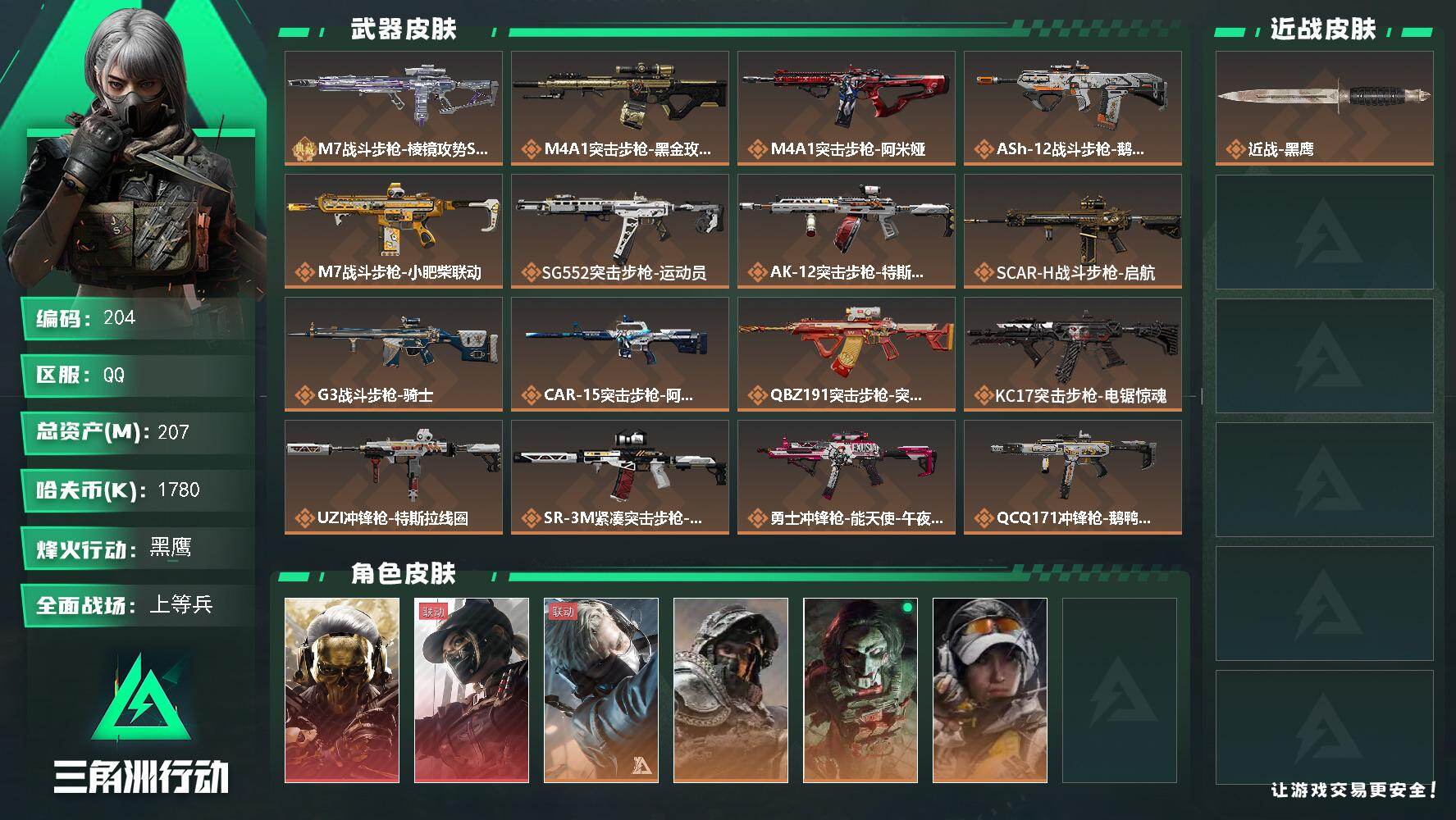 207m总资产-1780k哈伏币-60烽火等级-黑鹰-23战场等级-上等兵