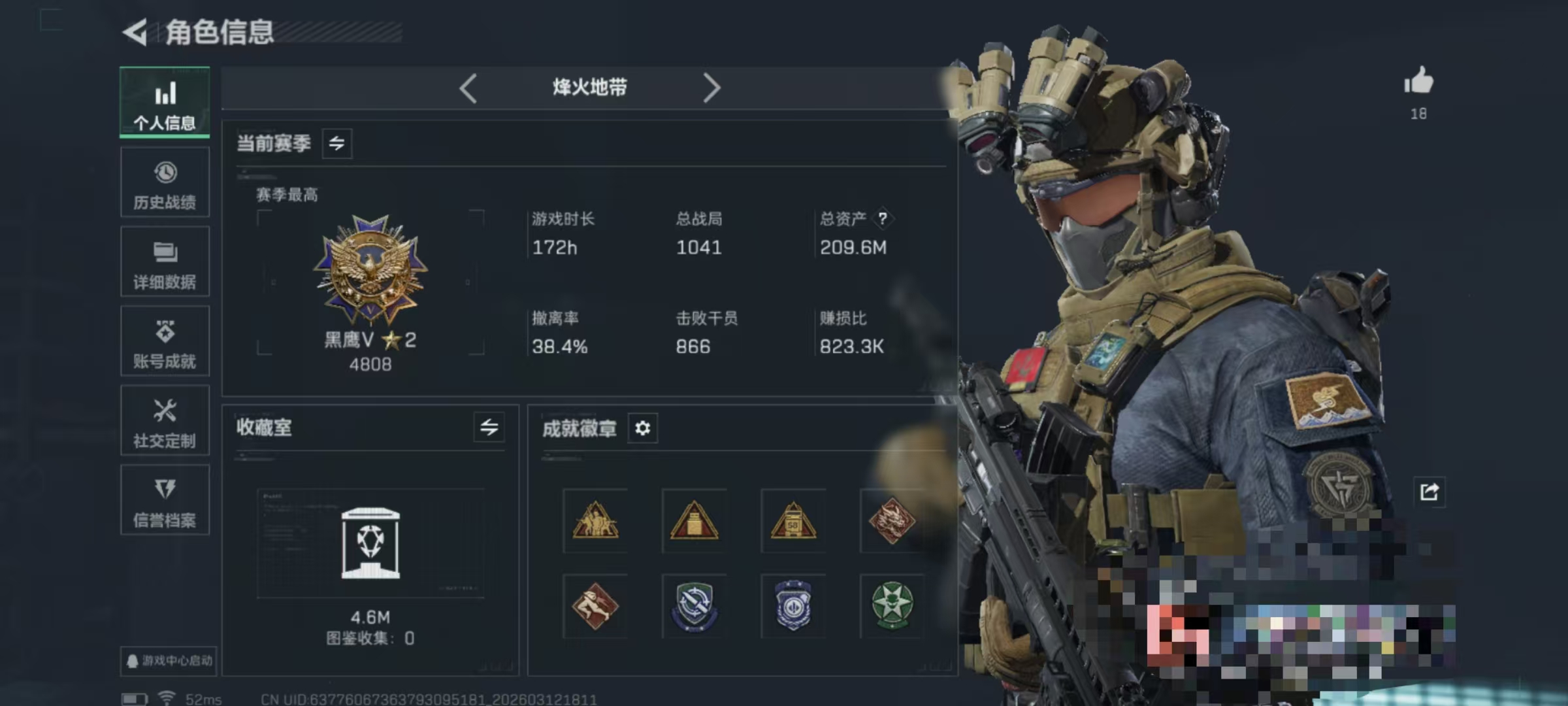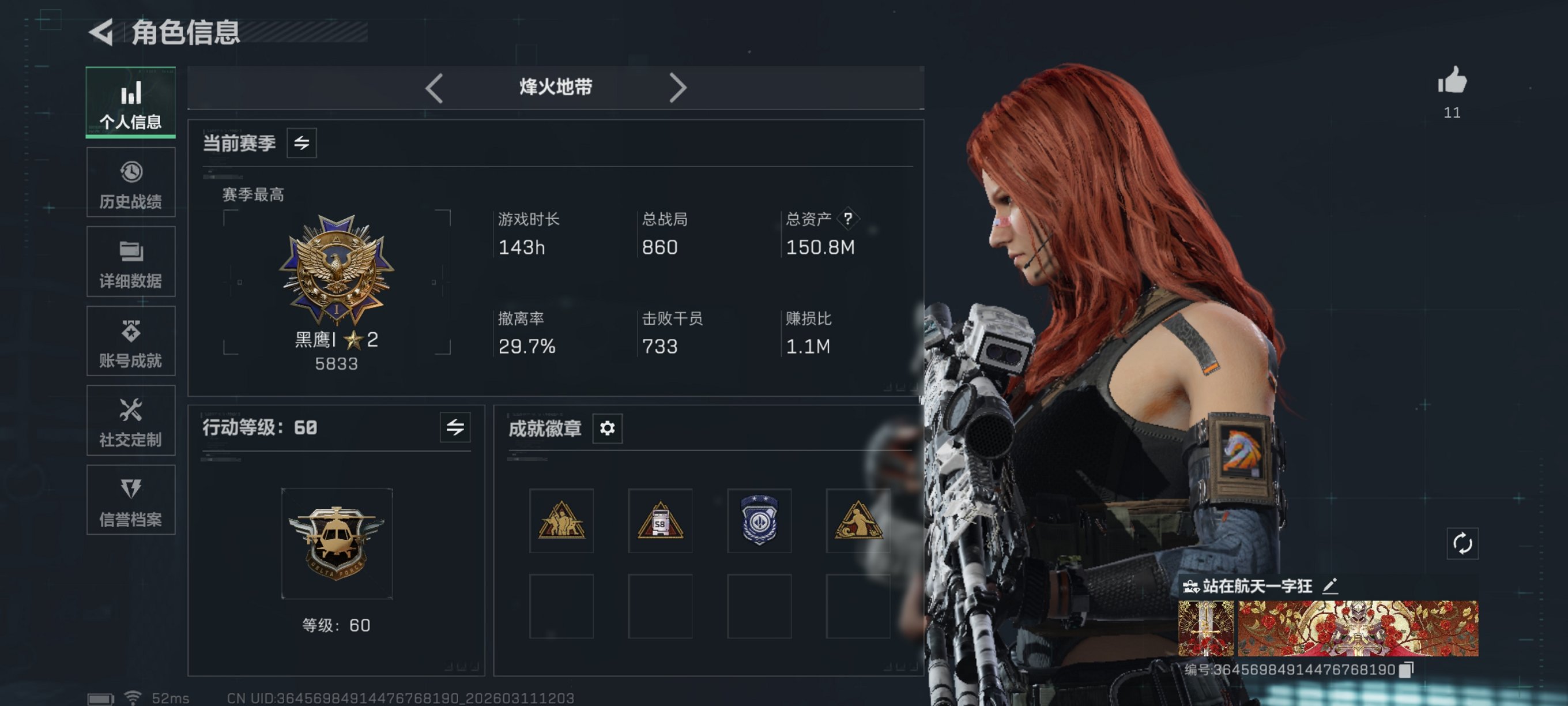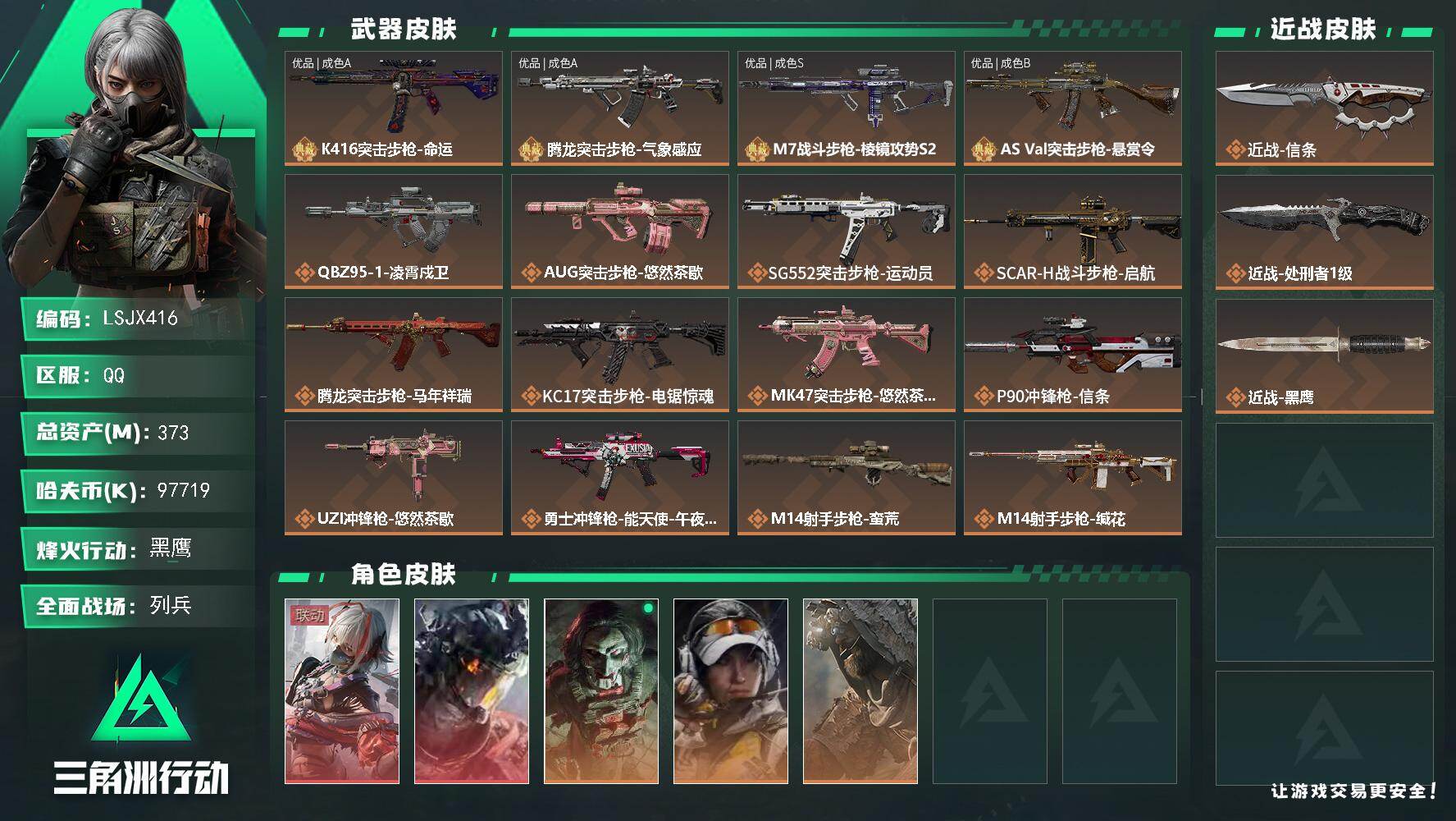 373m总资产-97719k哈伏币-60烽火等级-黑鹰-24战场等级-列兵