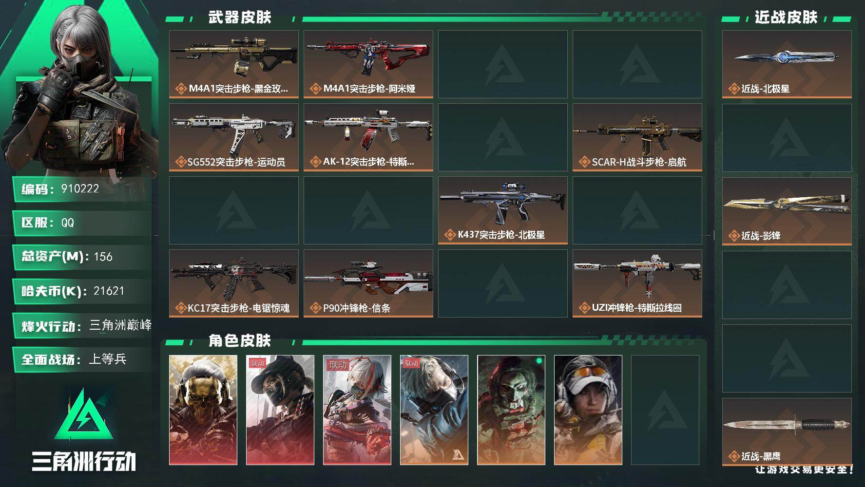 156m总资产-21621k哈夫币-60烽火等级-三角洲巅峰-27战场等级-上等兵