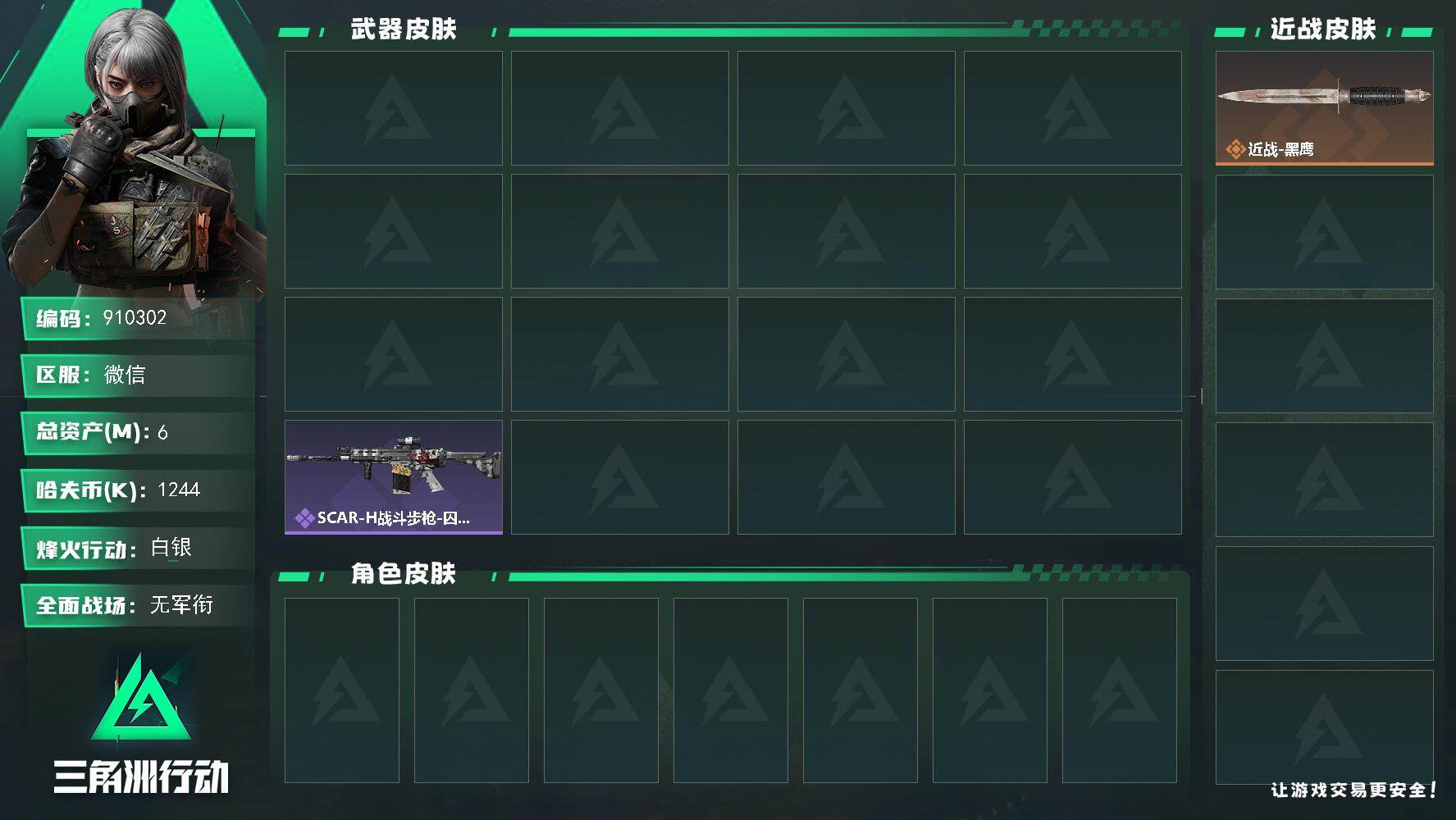 6m总资产-1244k哈夫币-41烽火等级-白银-1战场等级-无军衔