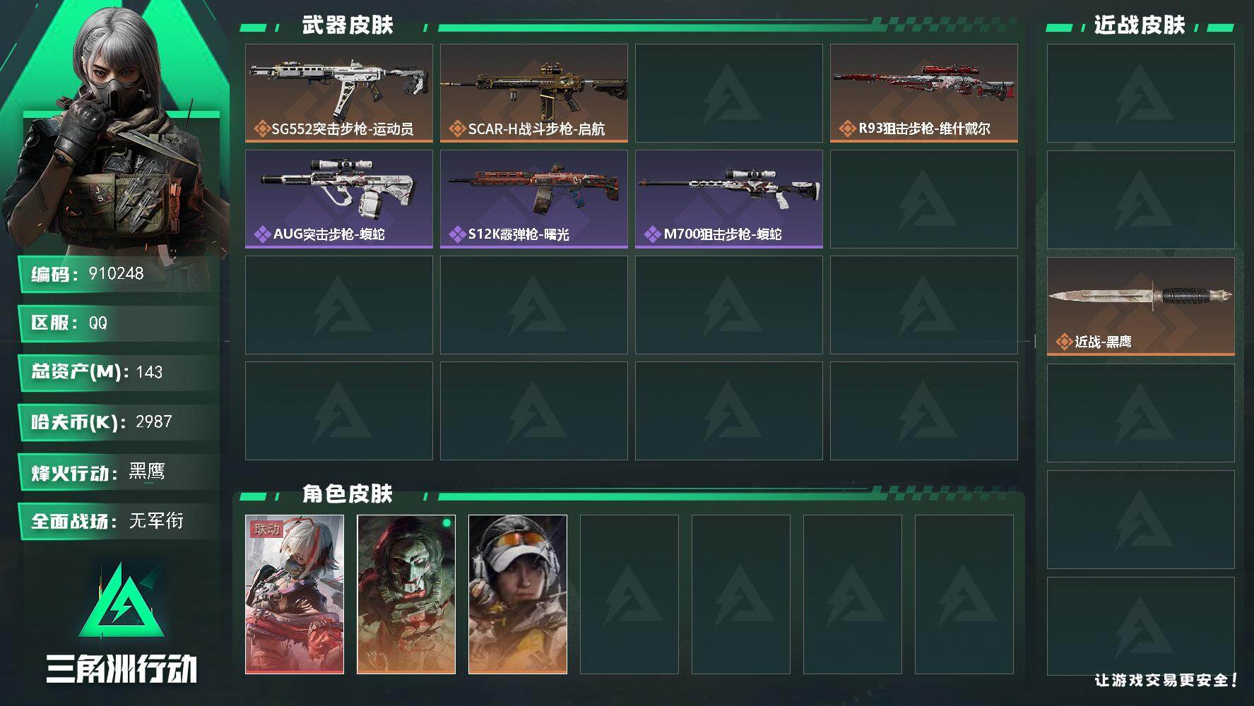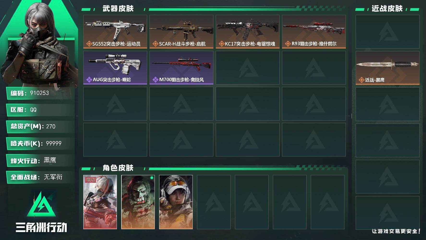 270M资产 216M哈夫币(2个多亿)新刀皮处刑者 3干员