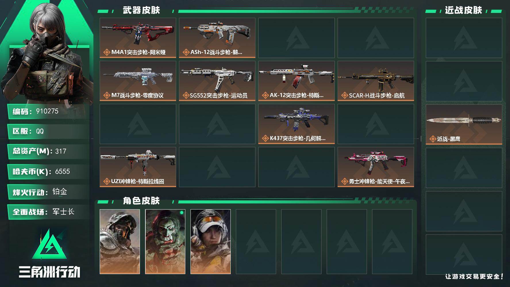 317m总资产-6555k哈夫币-60烽火等级-铂金-30战场等级-军士长