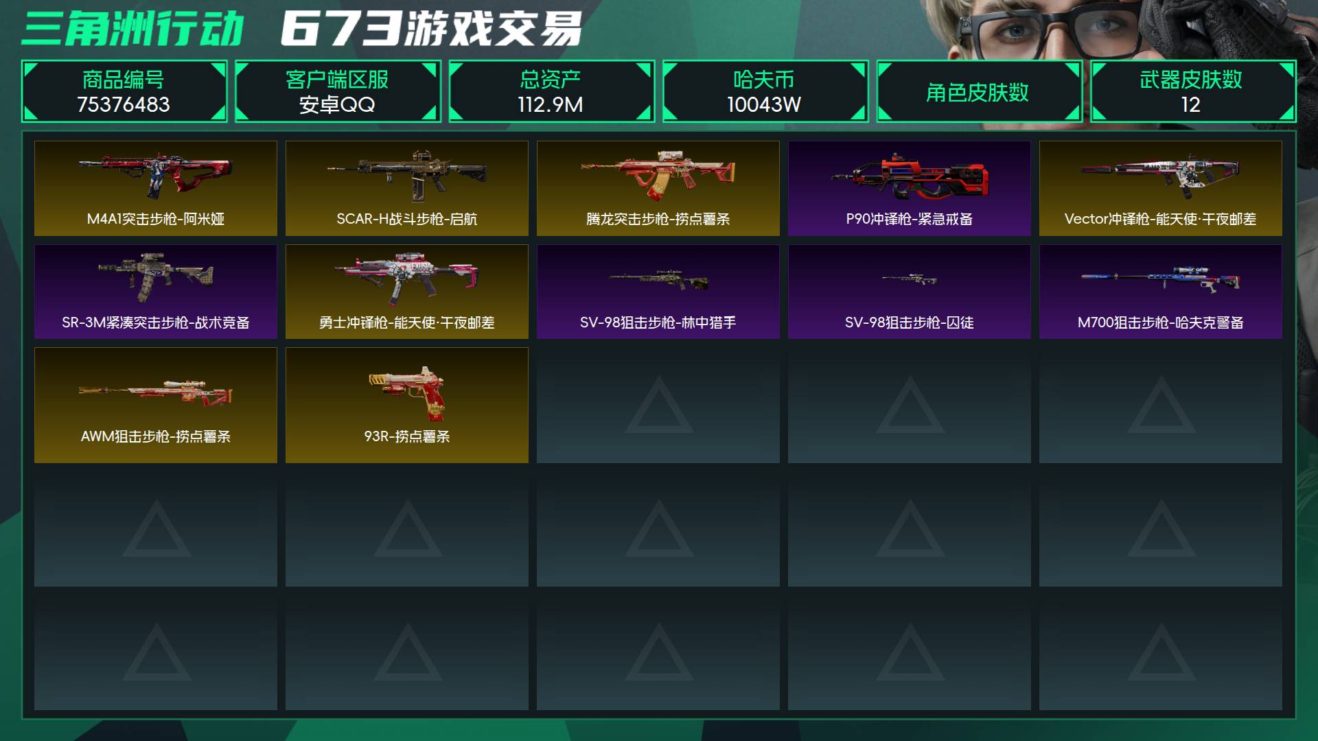 烽火段位铂金4 战场段位暂无段位 总资产112.9M 哈夫币10043W 挂饰12 近战1 枪械12 载具6