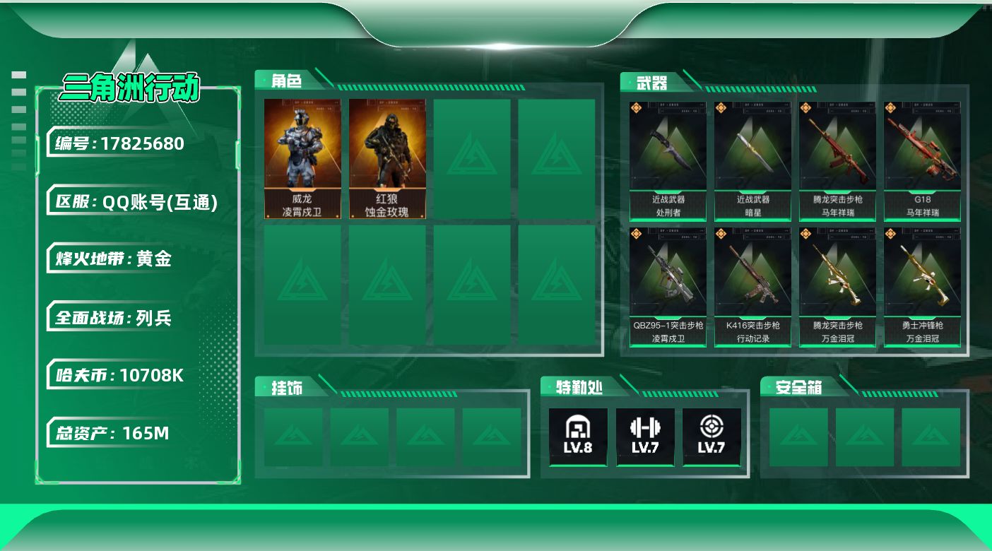 165m总资产-10708k哈夫币-60烽火等级-黄金-9
