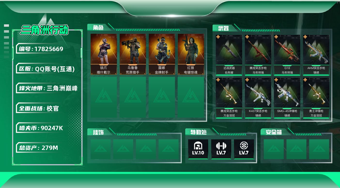 279m总资产-90247k哈夫币-60烽火等级-三角洲巅峰-50战场等级-校官