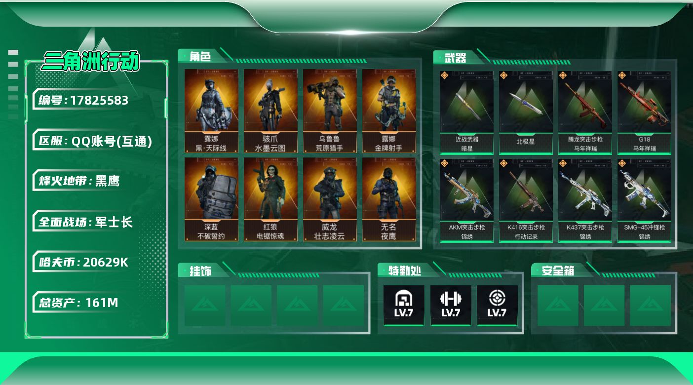 161m总资产-20629k哈夫币-60烽火等级-黑鹰-50战场等级-军士长