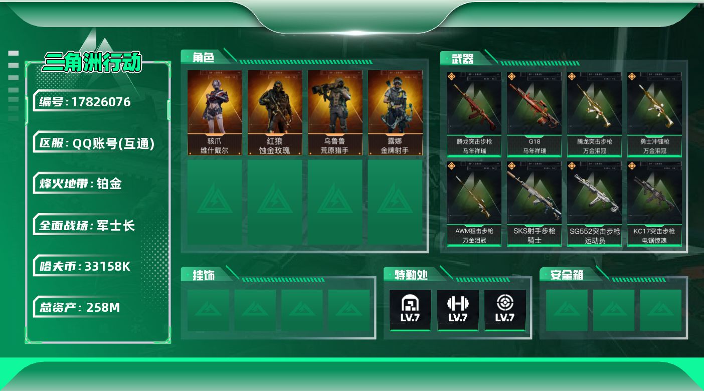 258m总资产-33158k哈夫币-60烽火等级-铂金-26战场等级-军士长