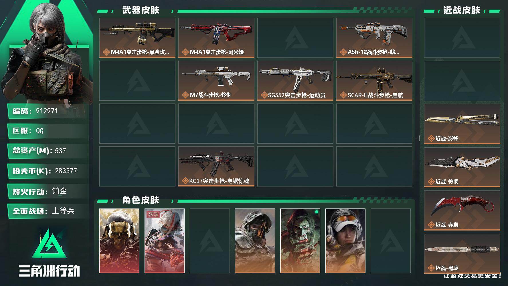537m总资产-283377k哈夫币-60烽火等级-铂金-22战场等级-上等兵
