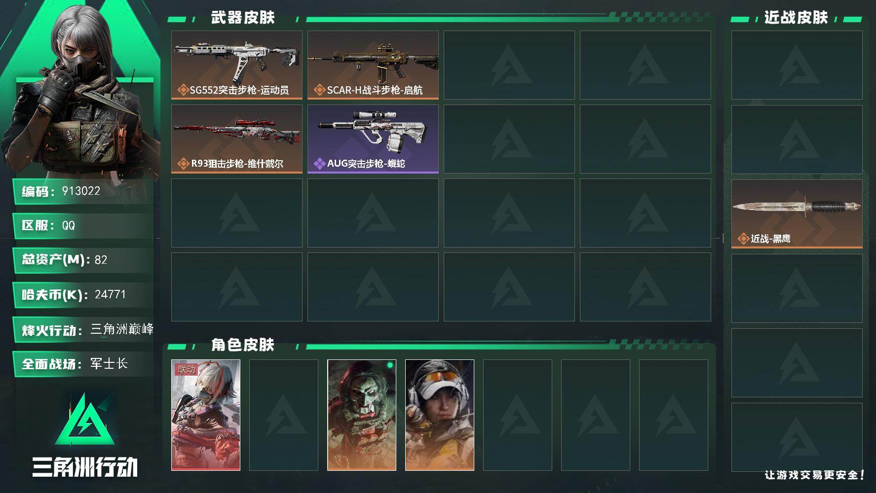 总价值82.3M-哈夫币24771k-烽火地带等级60烽火地带段位三角洲巅峰