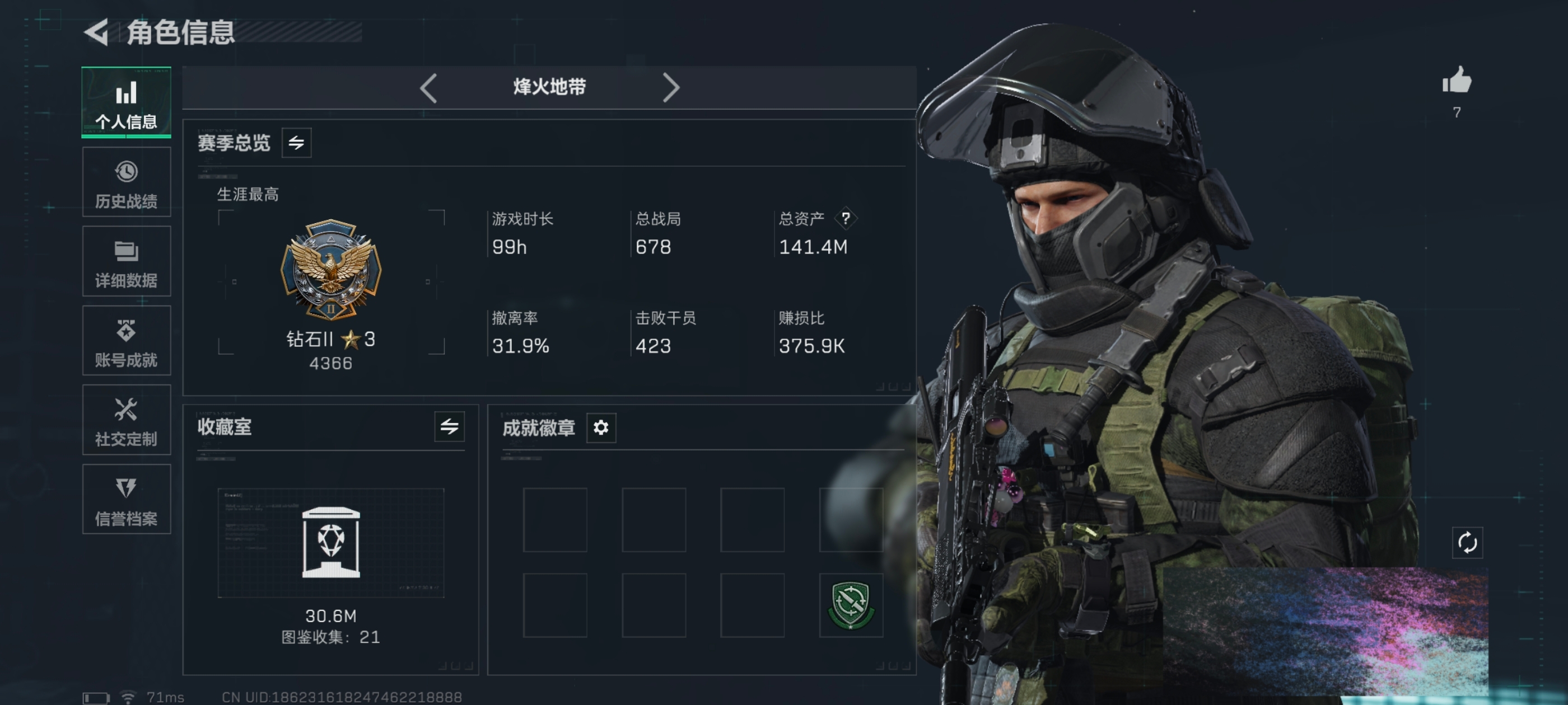 仓库价值141.4M 哈夫币41710K S7赛季通行证已开