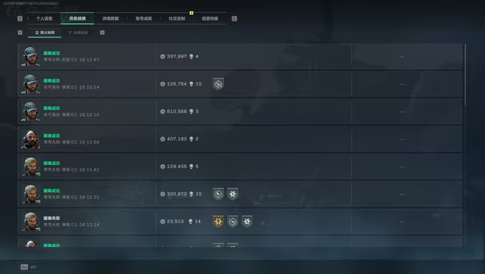 161m总资产-3197k哈伏币-60烽火等级-黄金-1战场等级-无军衔【近