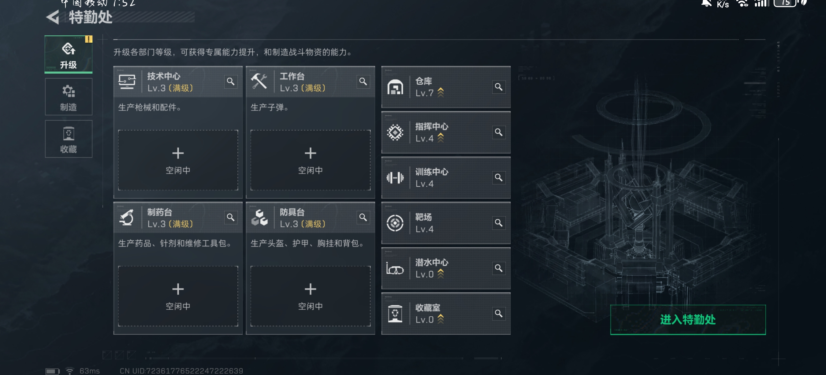 适合新手入手,资产有点少,新手可以从普坝开始,特勤处满级七仓,四体力,四负重,刀皮黑鹰