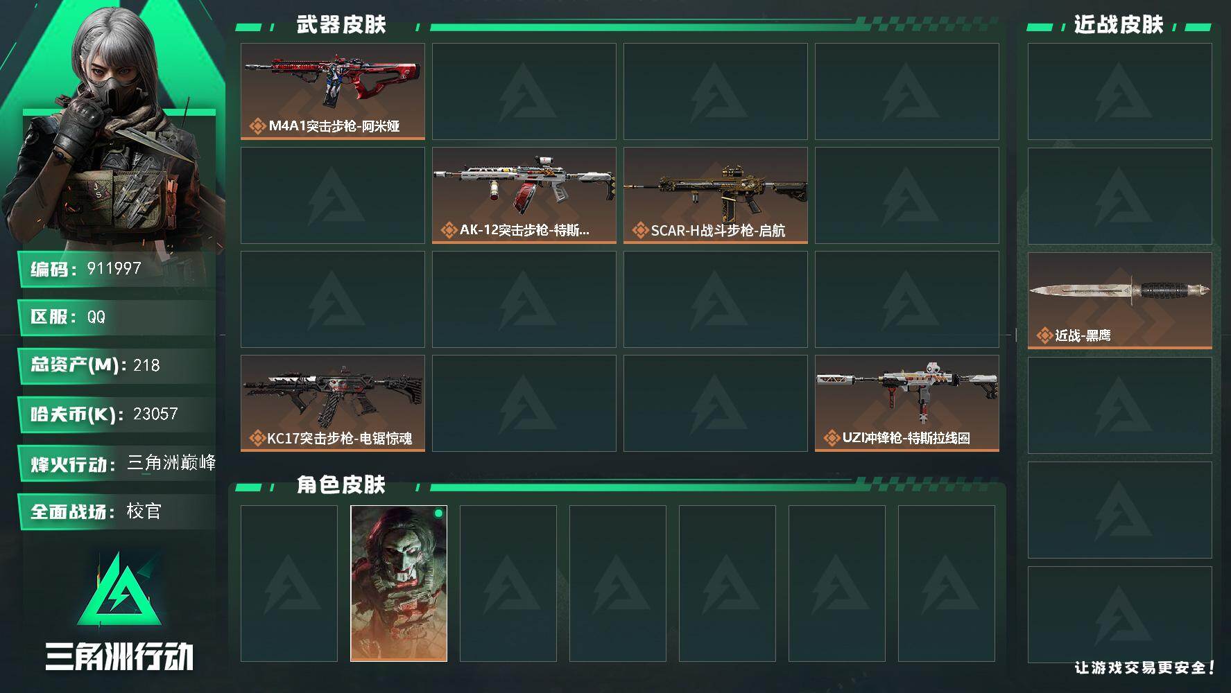 218m总资产-23057k哈夫币-60烽火等级-三角洲巅峰-50战场等级-校